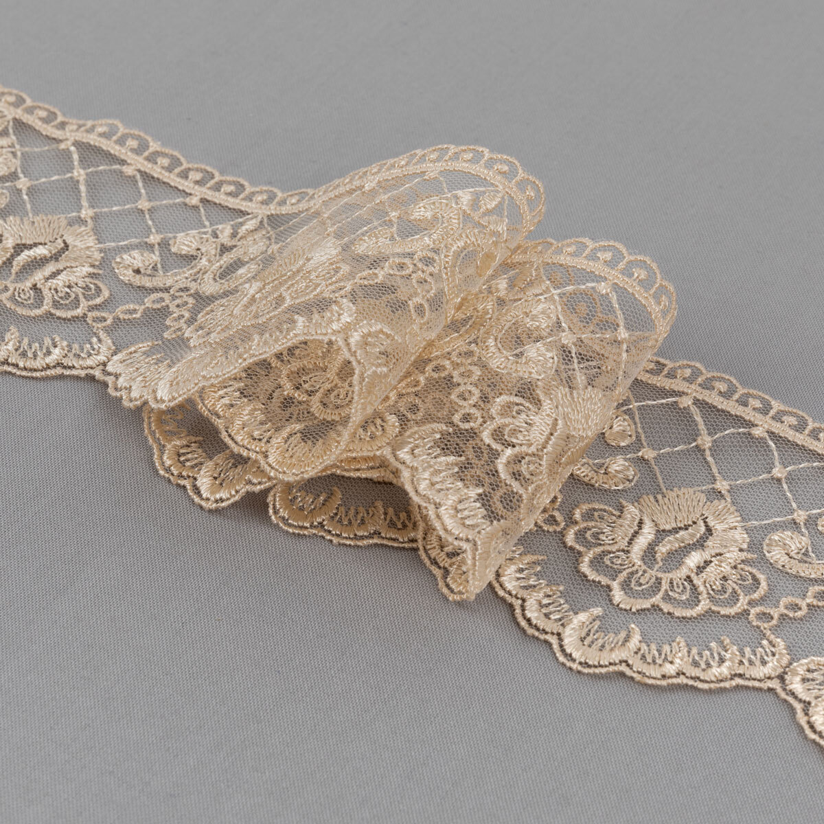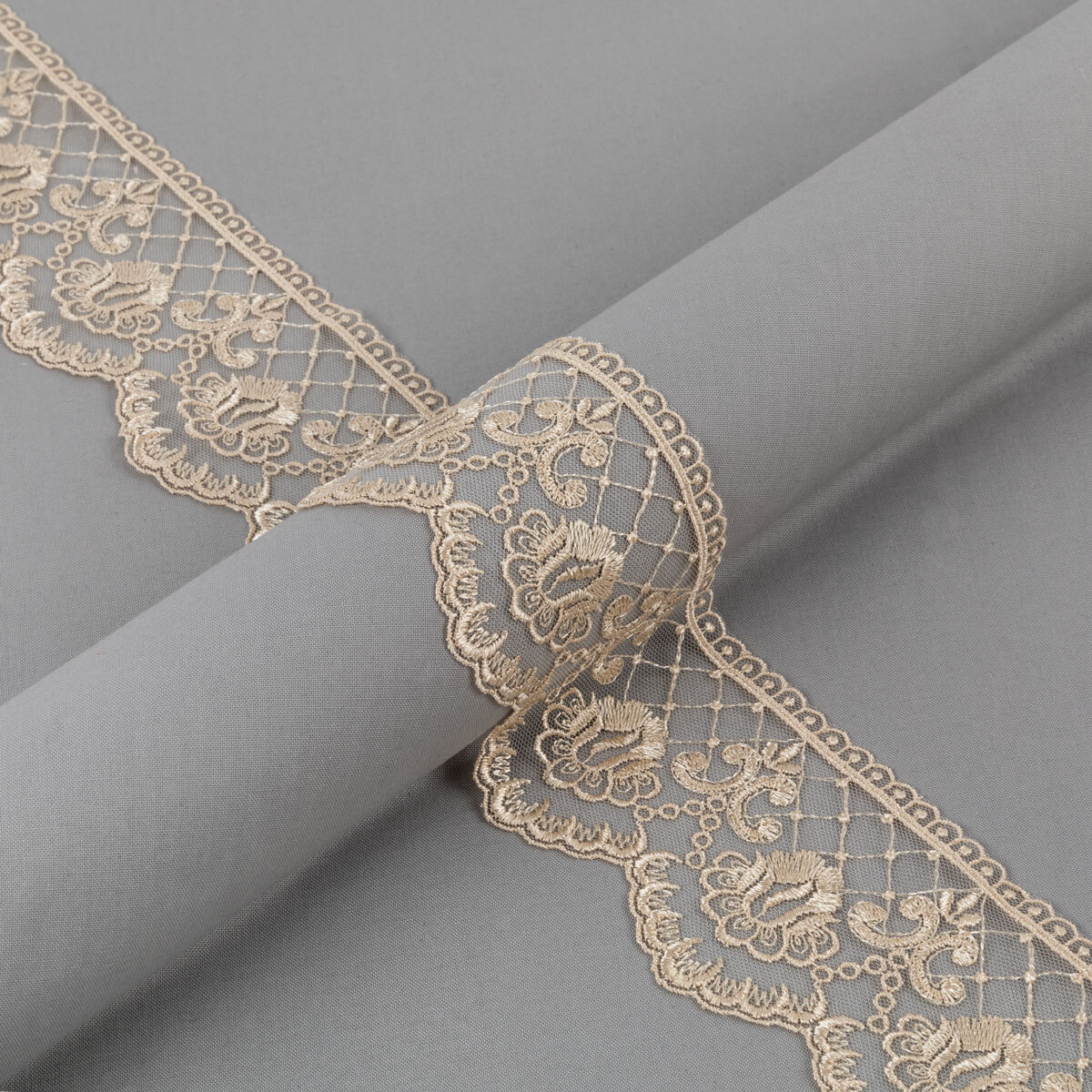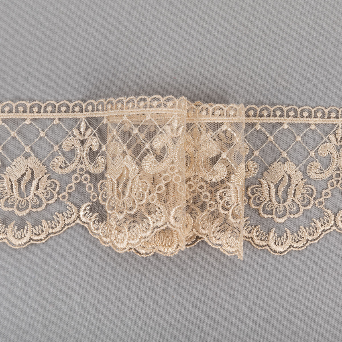 Кружево на сетке представляет собой кружевное полотно, основа которого сетка или фатин. применяется для декоративной отделки лёгкой женской одежды и домашнего текстиля.