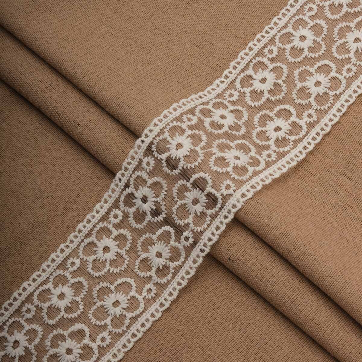 Кружево на сетке 75 мм / 27.4 метров, цв. молочный, 3AR2314