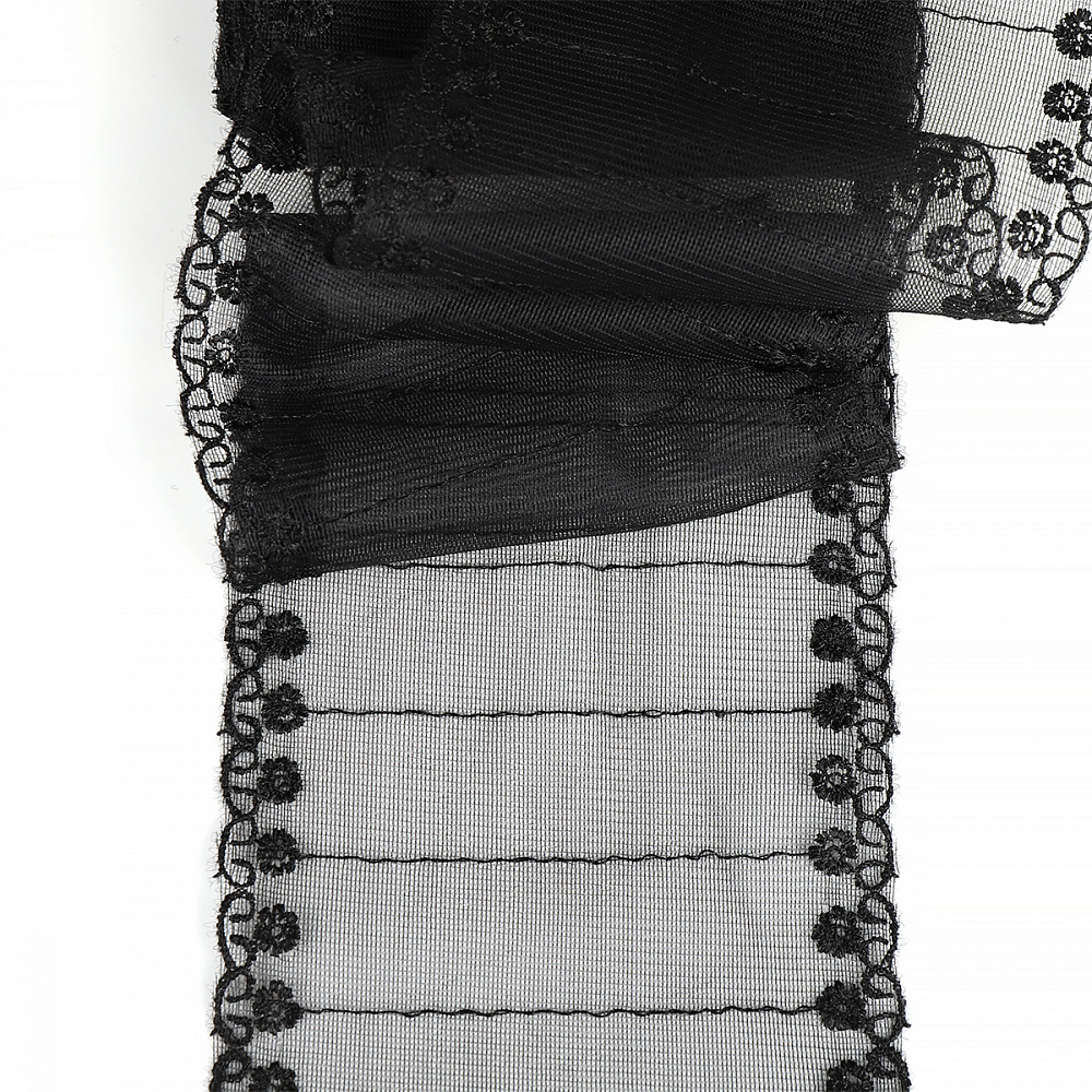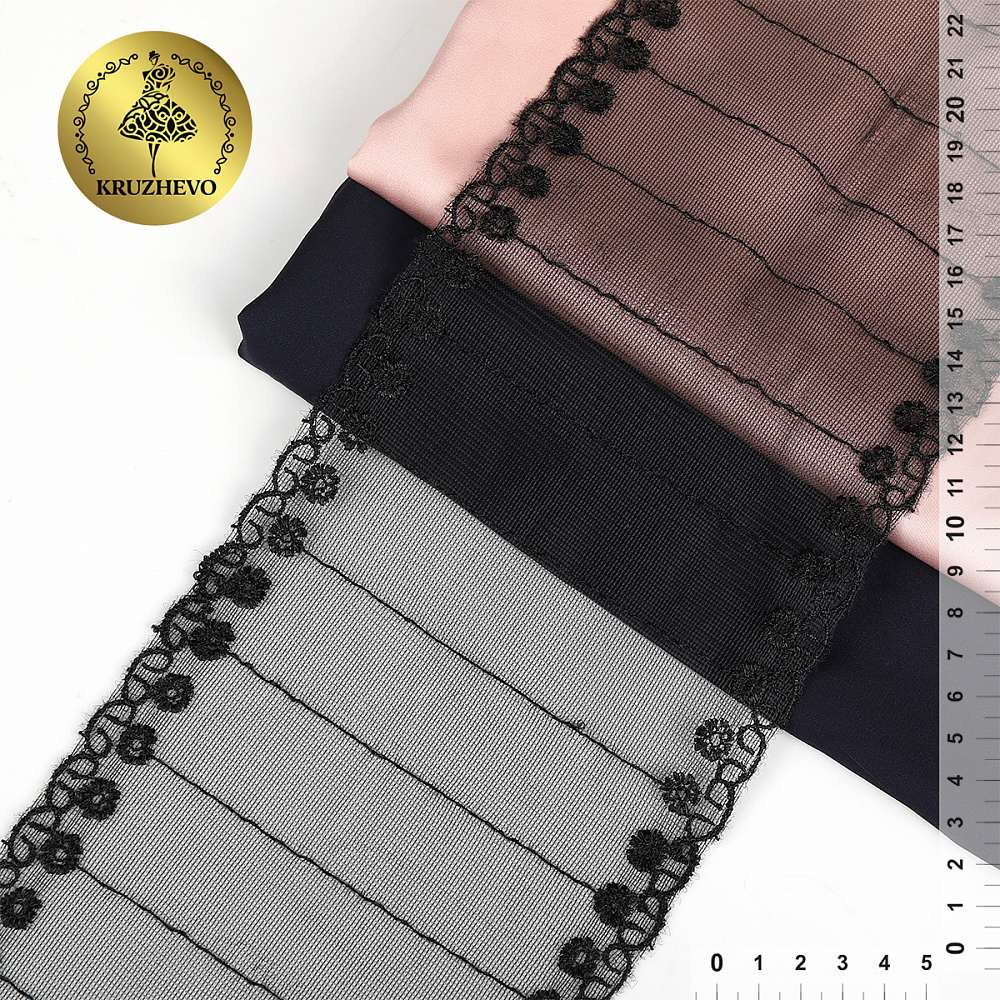 Кружево на сетке широкое 130 мм, диз. 202, цв.черный уп. 13.71 м, Kruzhevo