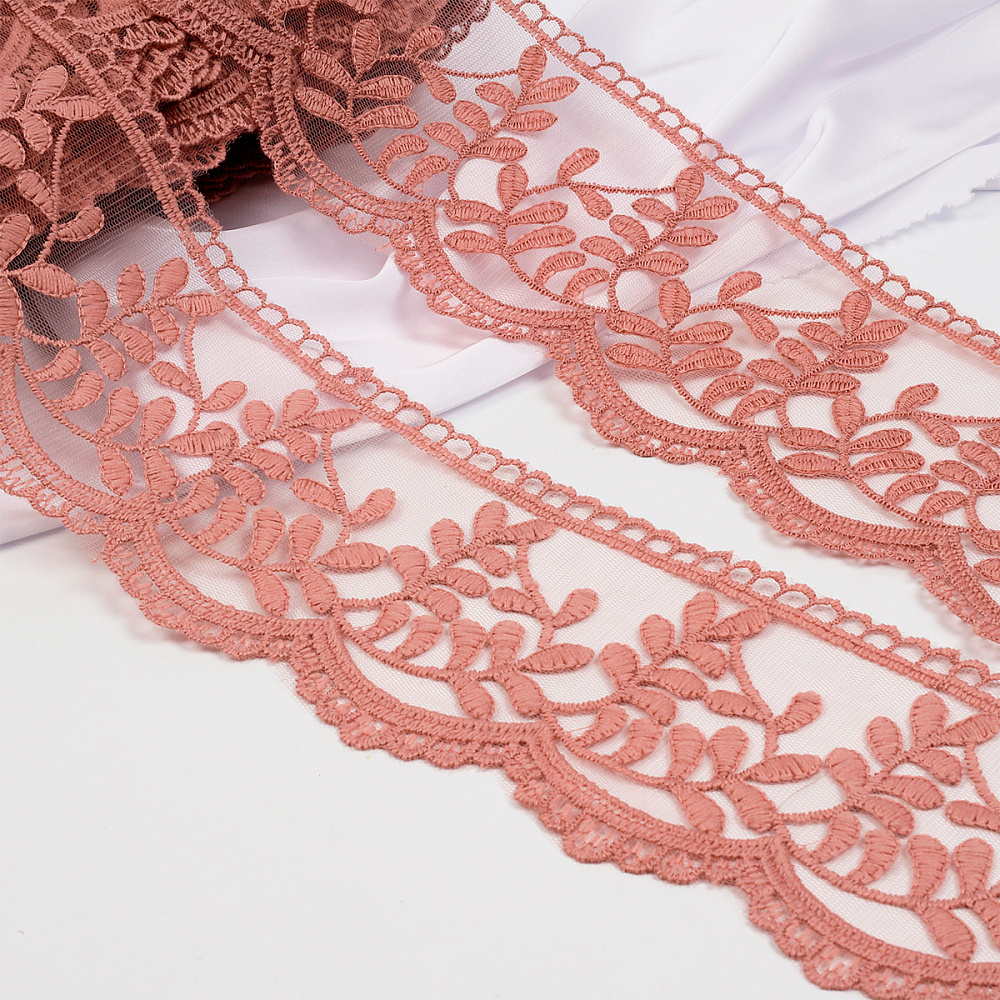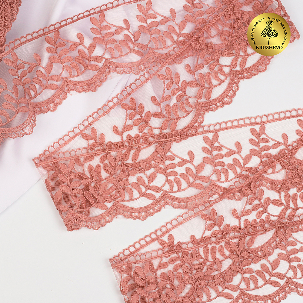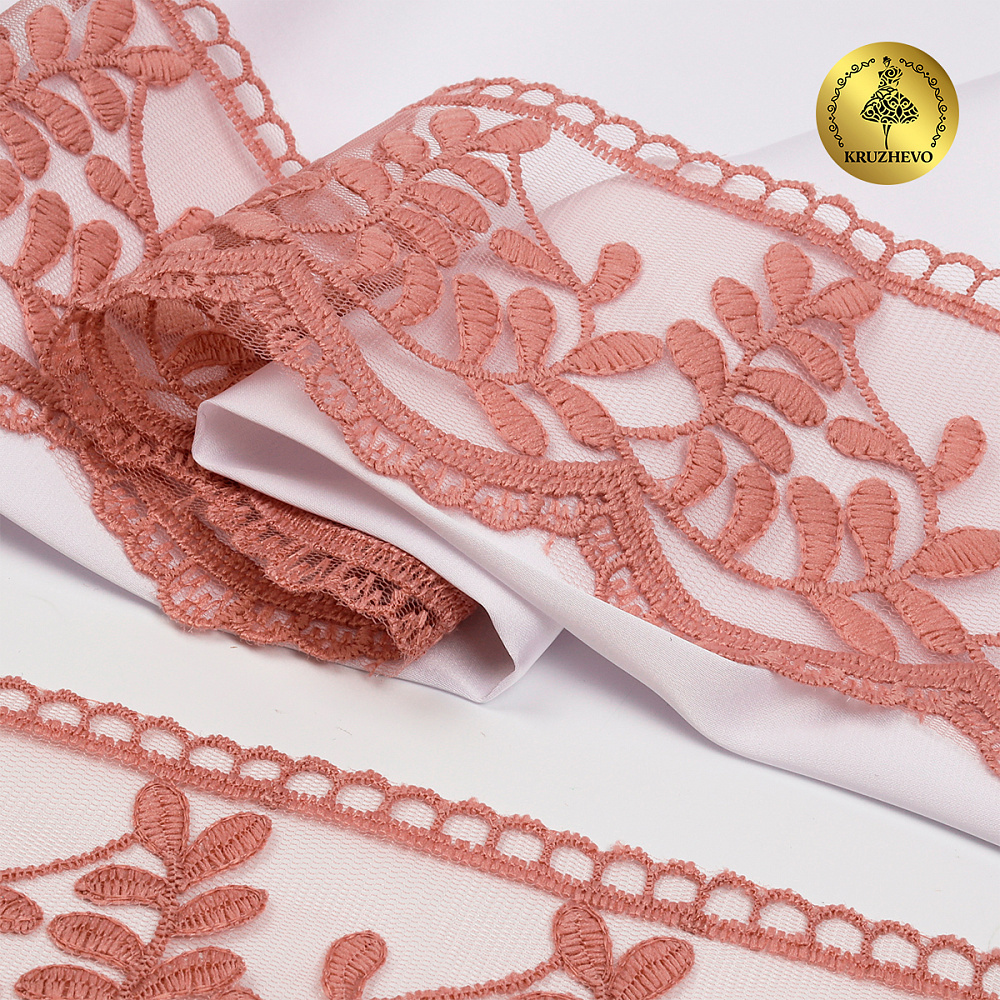 Очень красивый и нежный дизайн кружева на сетке. Кружево приятное на ощупь, качественное. Вышивка выполнена матовой нитью. Смотрится очень красиво и нежно. Идеально подойдет для отделки одежды, домашнего текстиля, детских конвертов.