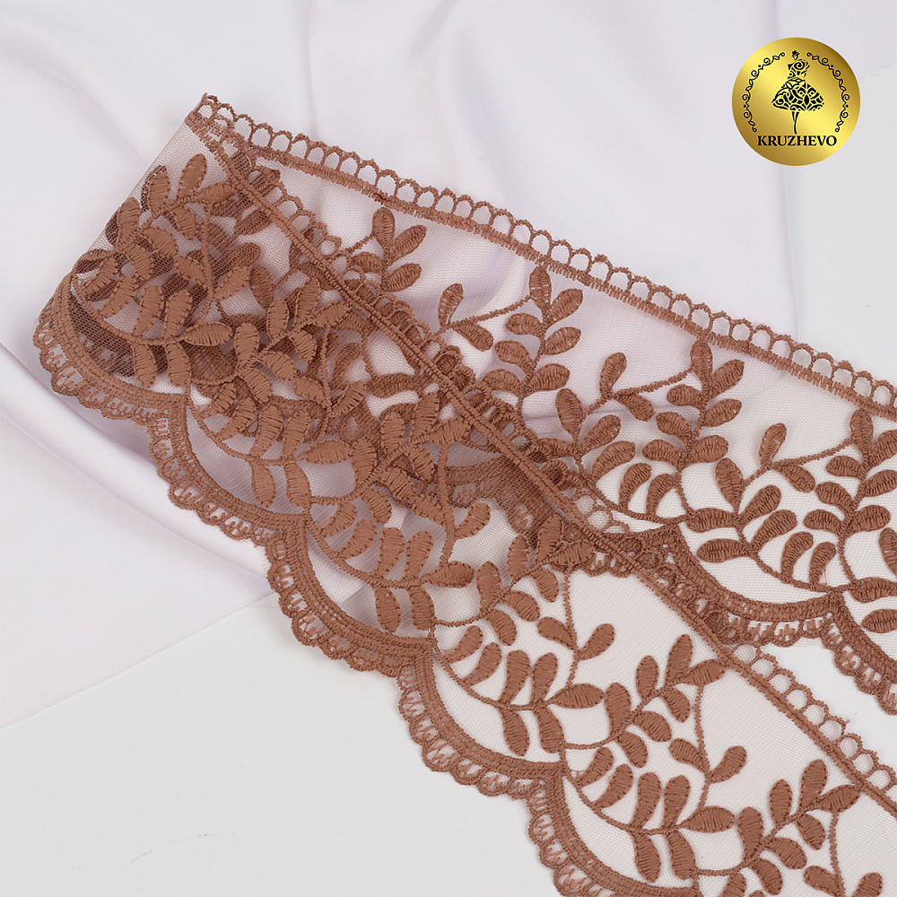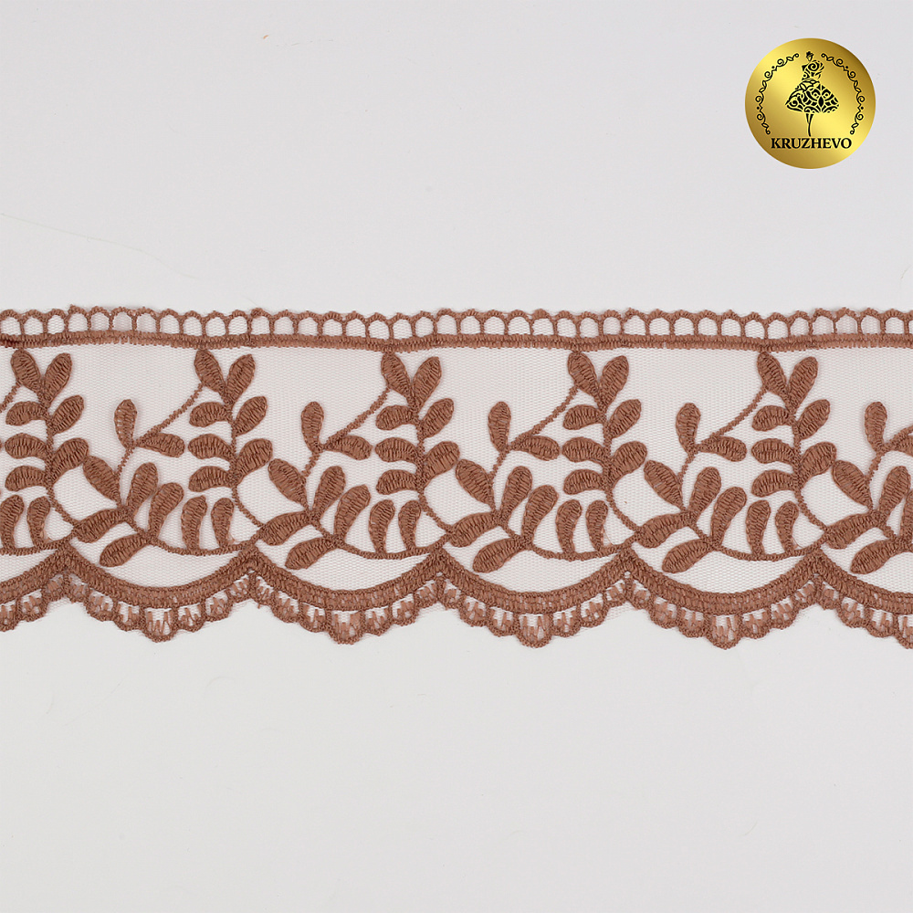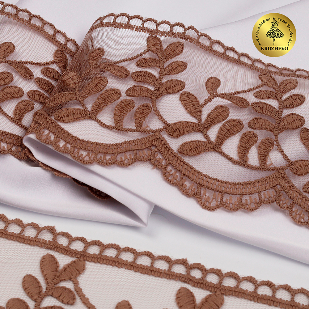 Кружево на сетке 85 мм, цв.N4815 кофе, уп.13.7м, Kruzhevo