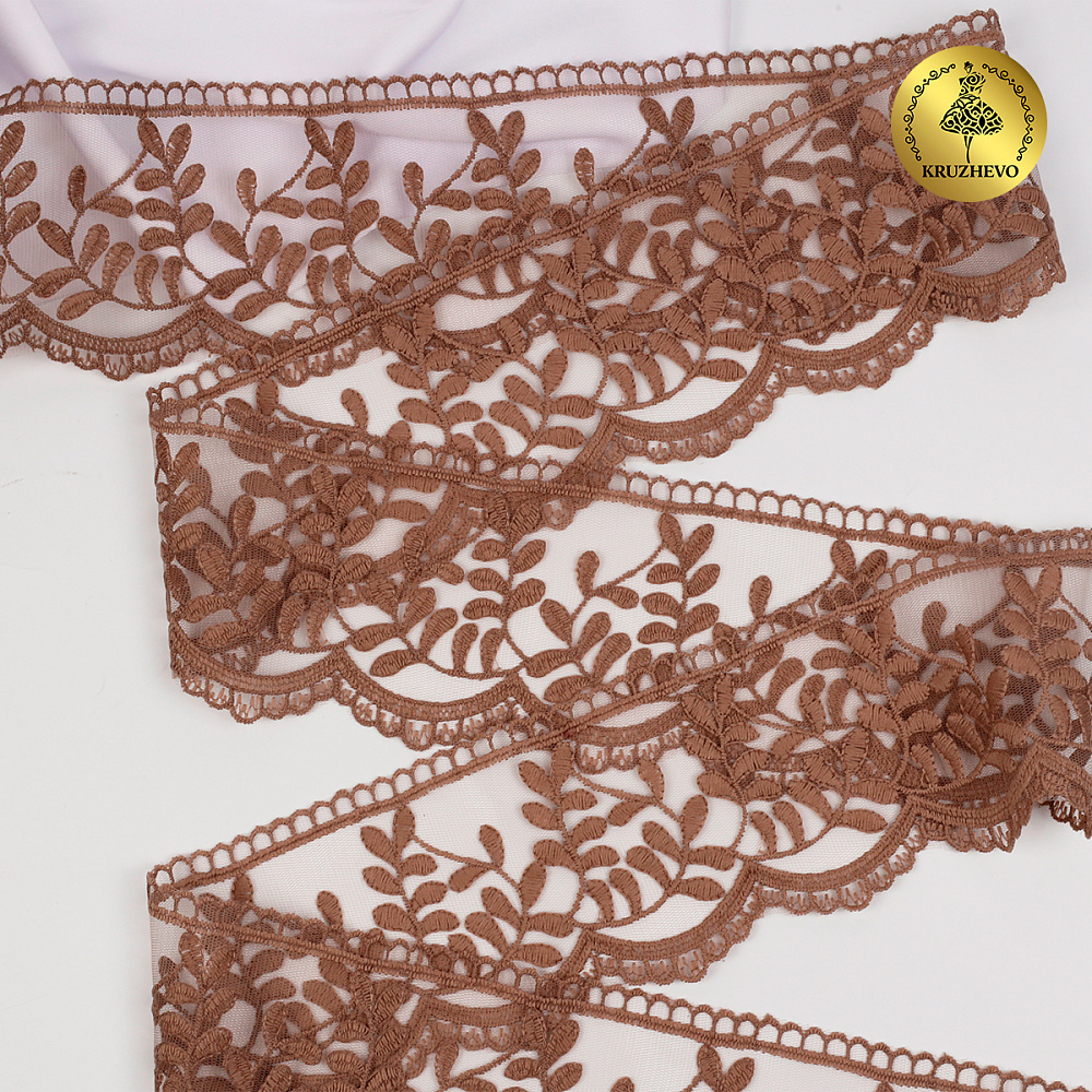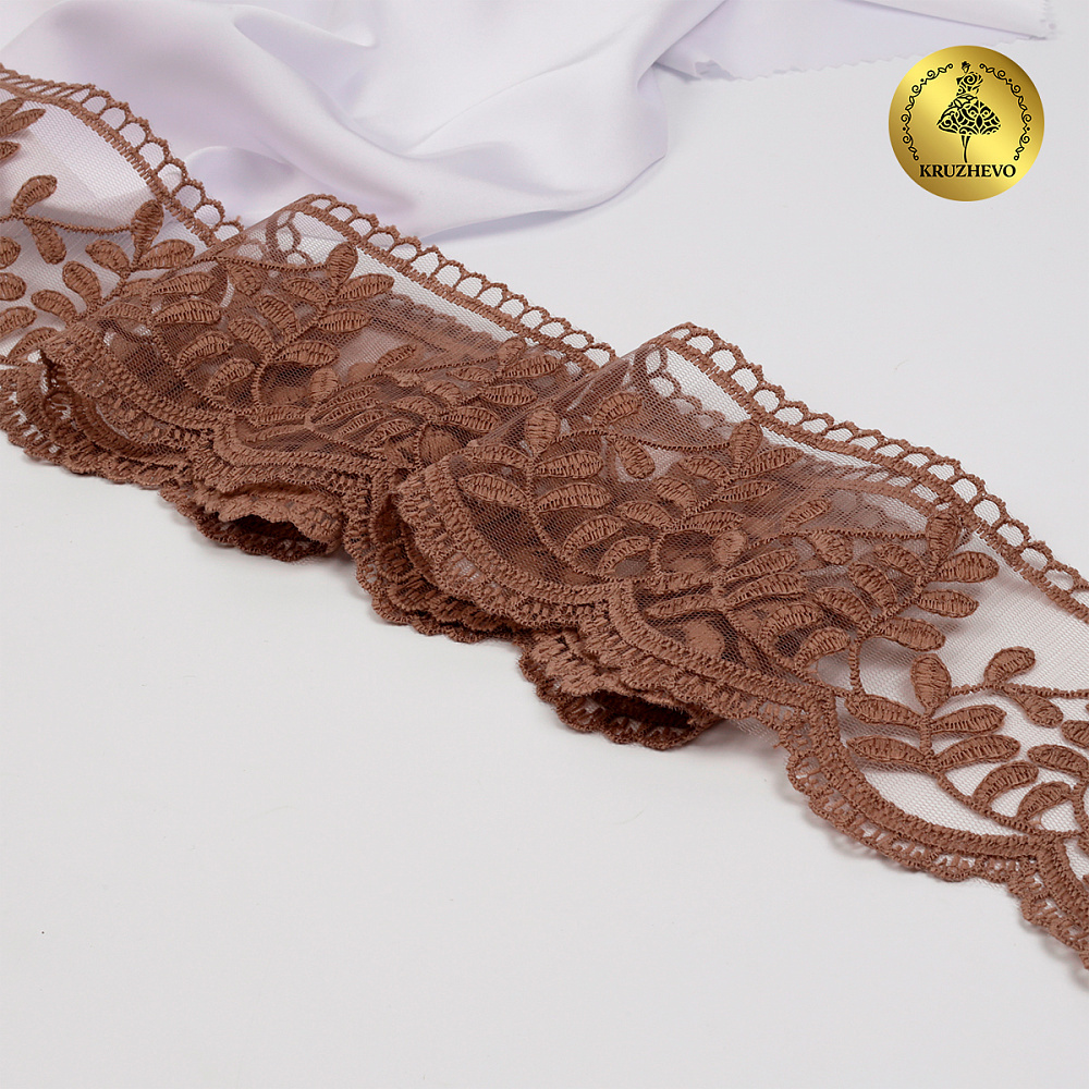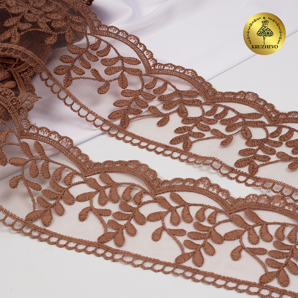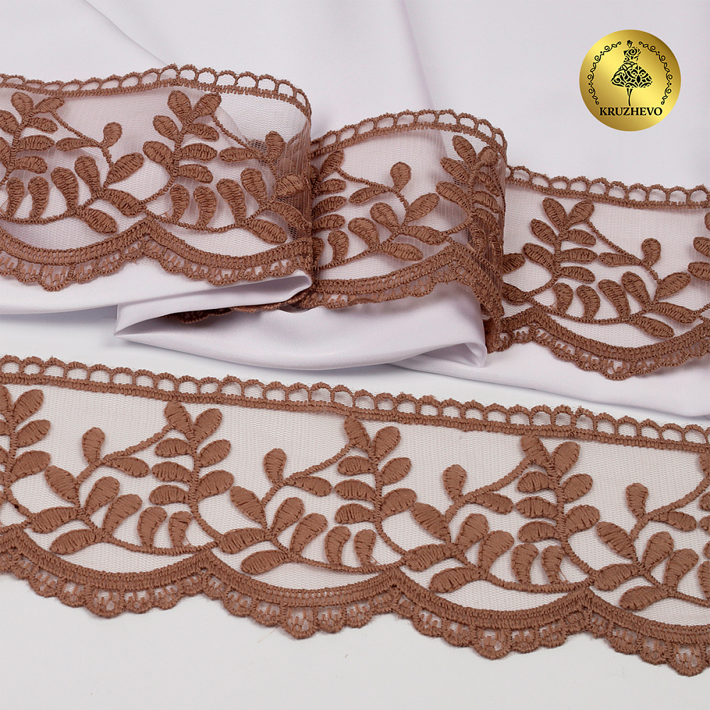 Кружево на сетке 85 мм, цв.N4815 кофе, уп.13.7м, Kruzhevo