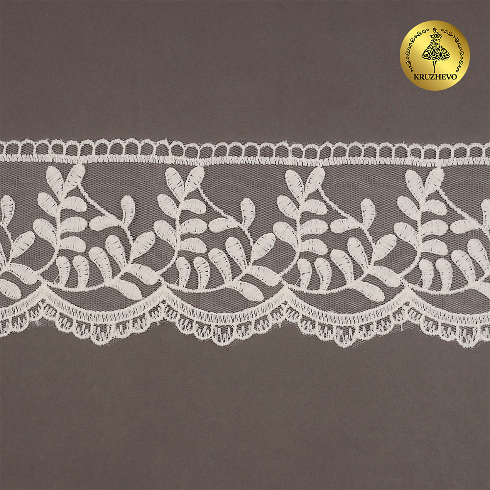 Кружево на сетке 85 мм, цв.W0115 молочный, уп.13.7м, Kruzhevo