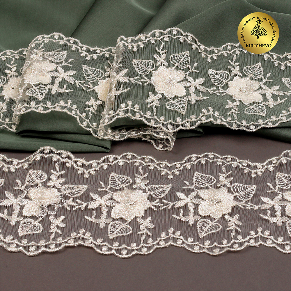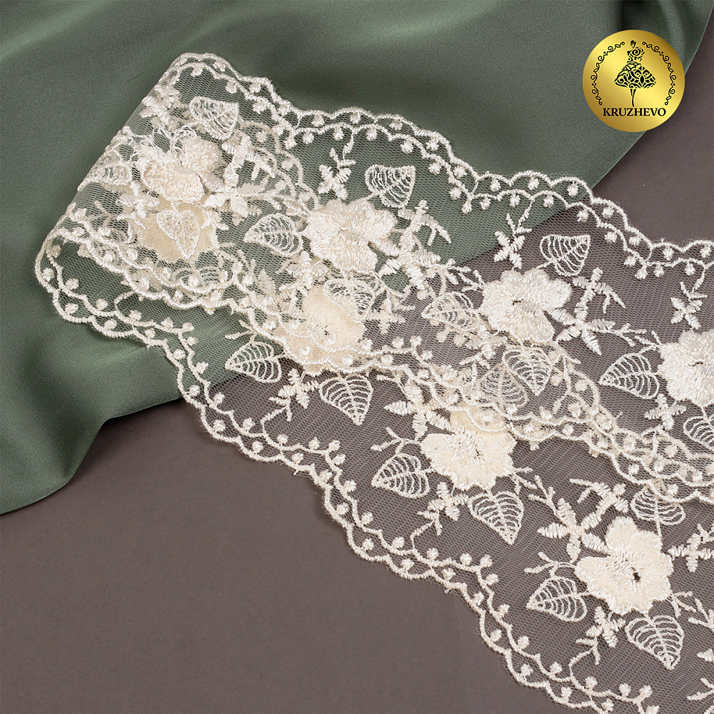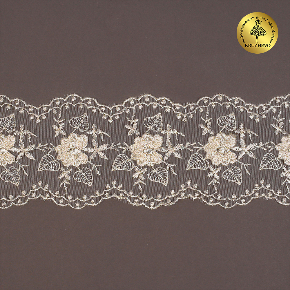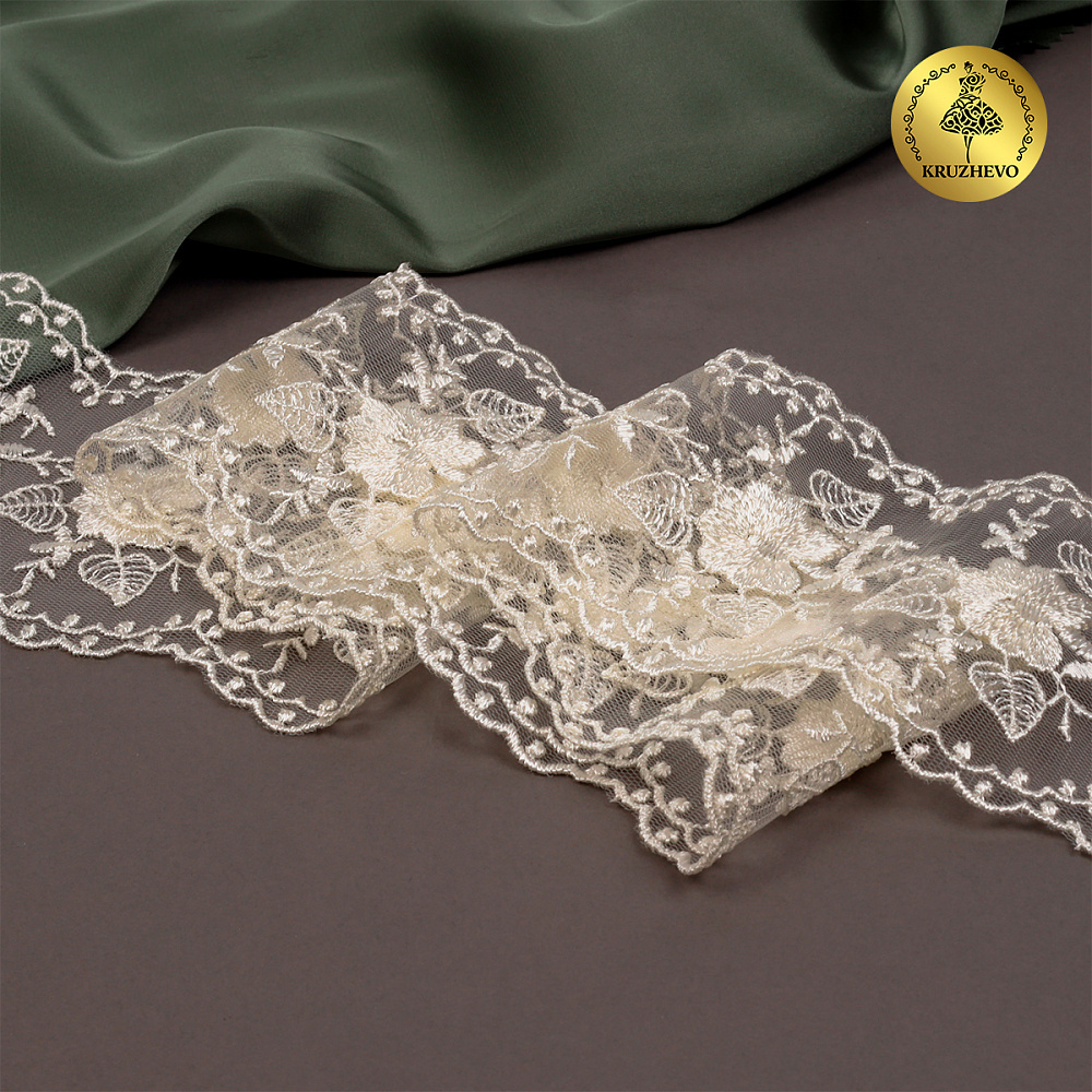Кружево на сетке 90 мм, цв.W0115 молочный, уп.13.7м, Kruzhevo