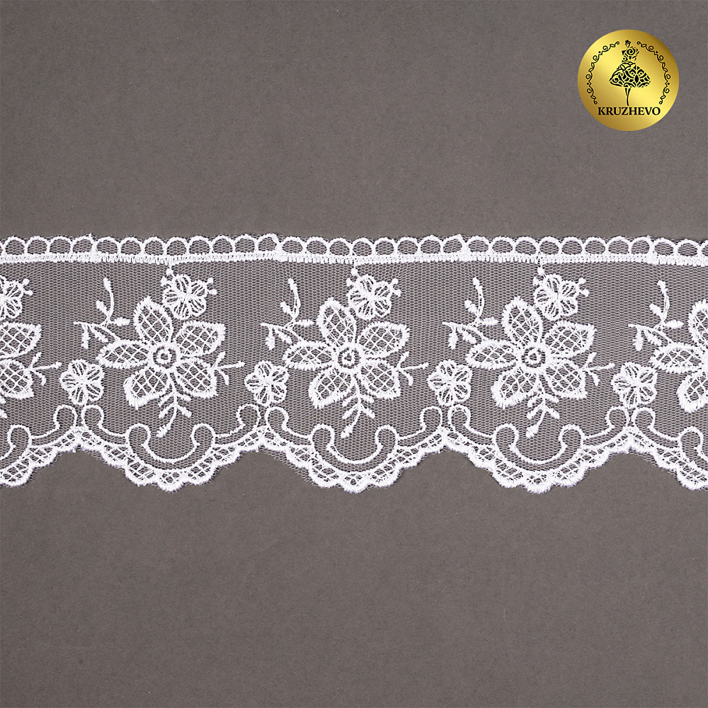 Кружево на сетке 75 мм, цв.01 белый, уп.13.7м, Kruzhevo