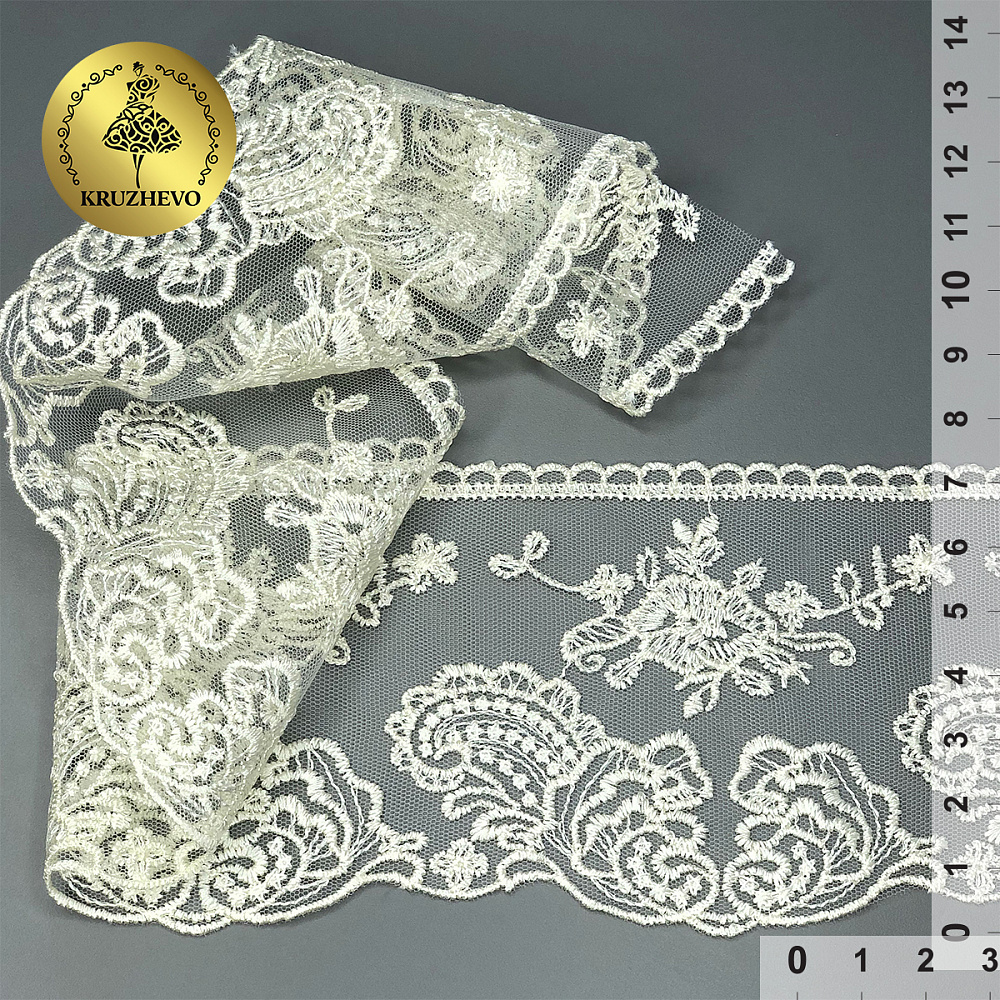 Кружево на сетке 70 мм, диз. 211, цв.01 молочный уп. 13.71 м, Kruzhevo