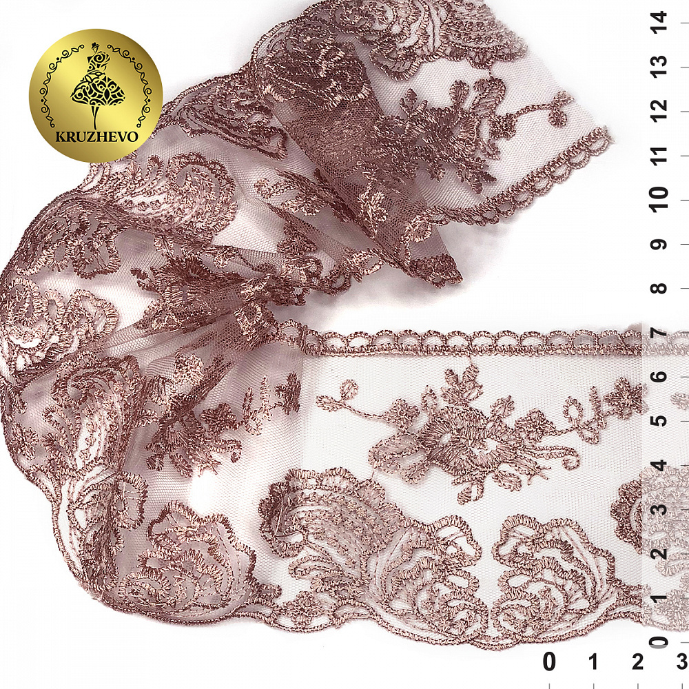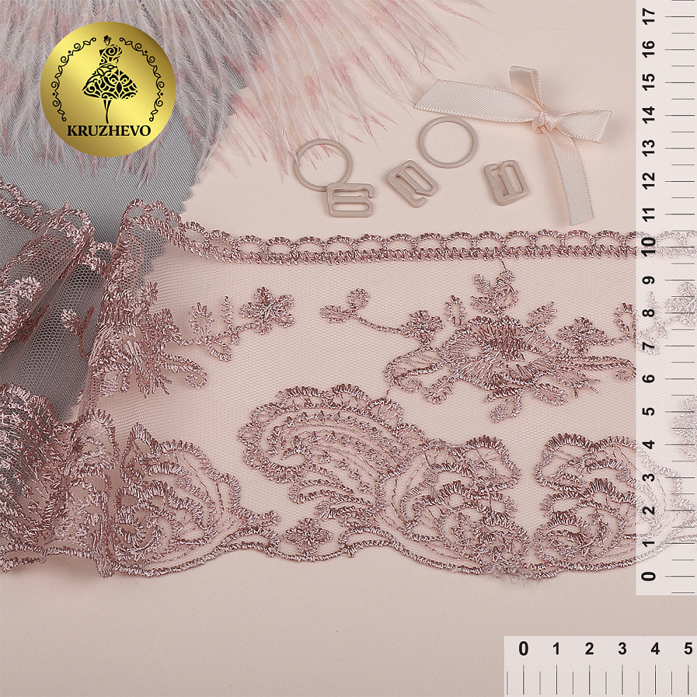 Кружево на сетке 70 мм, диз. 211, цв.6615 розовая пудра уп. 13.71 м, Kruzhevo