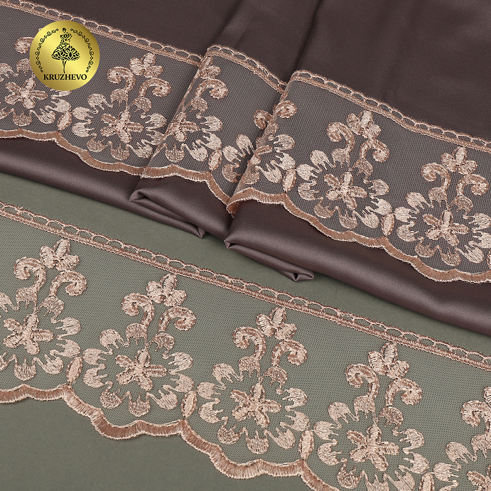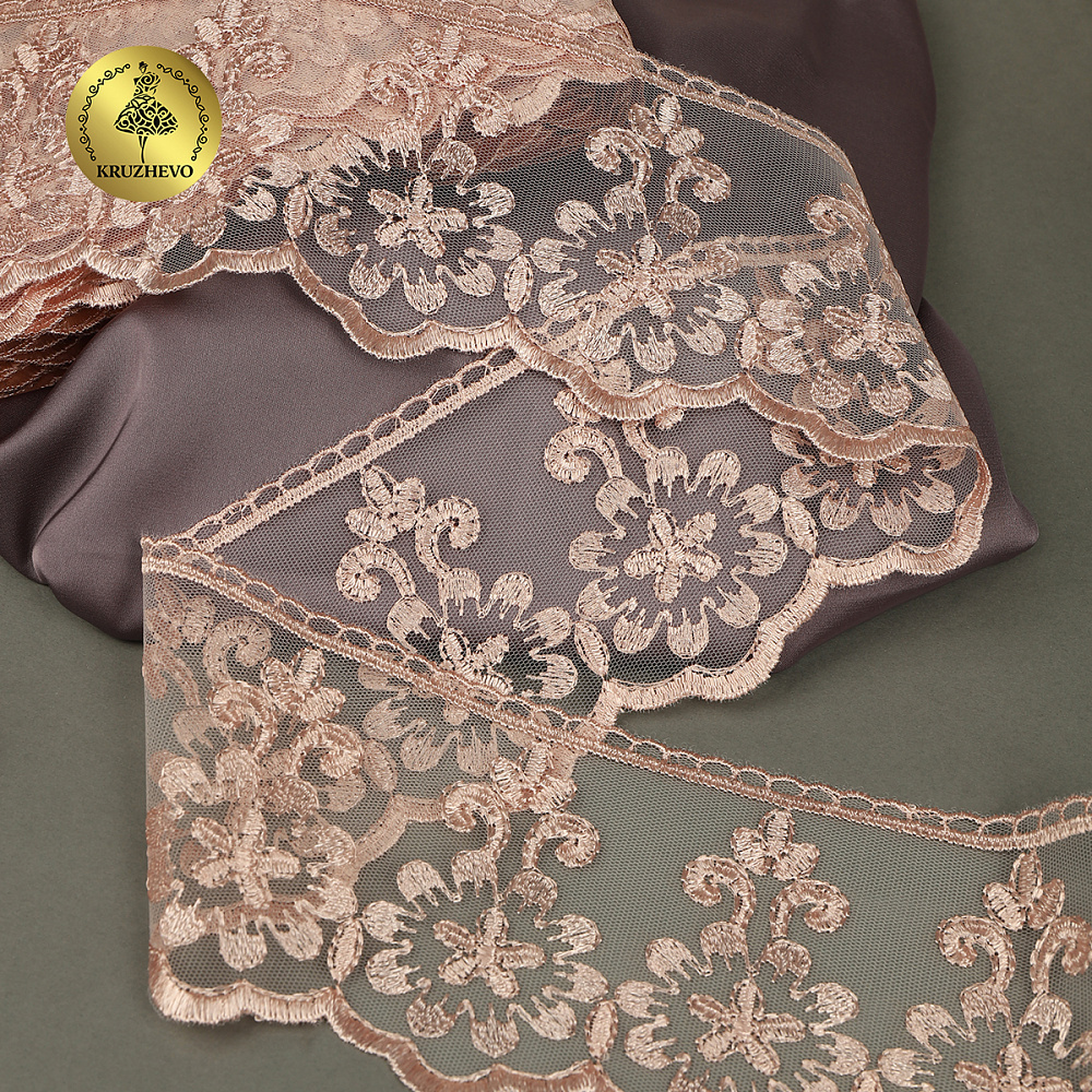 Очень красивое и нежное кружево на мягкой сетке. Воздушное, тонкое, приятное на ощупь. Кружево на сетке подходит, как для шитья, отделки, так и для скрапбукинга, изготовления кукол, свадебных украшений и одежды в стиле эко, бохо и шебби-шик.