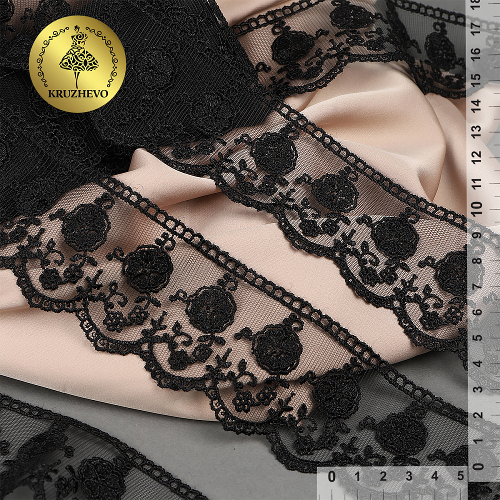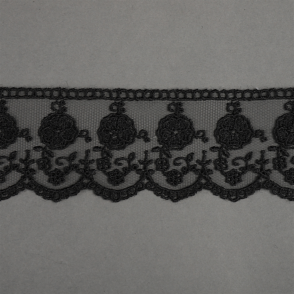 Кружево на сетке 60 мм, диз. 859, цв.03 черный, уп. 9 м, Kruzhevo