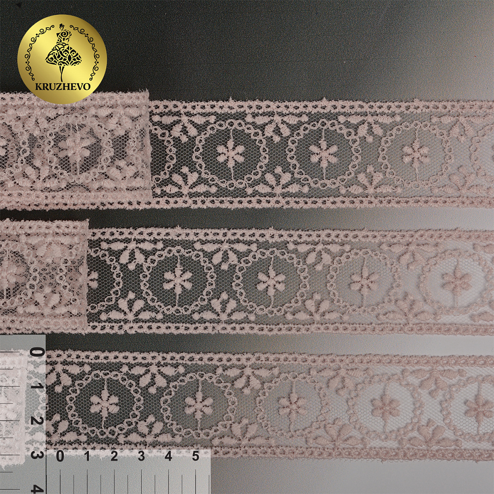 Кружево на сетке 30 мм, диз. 184, цв.308 нежно-розовый уп. 14 м, Kruzhevo