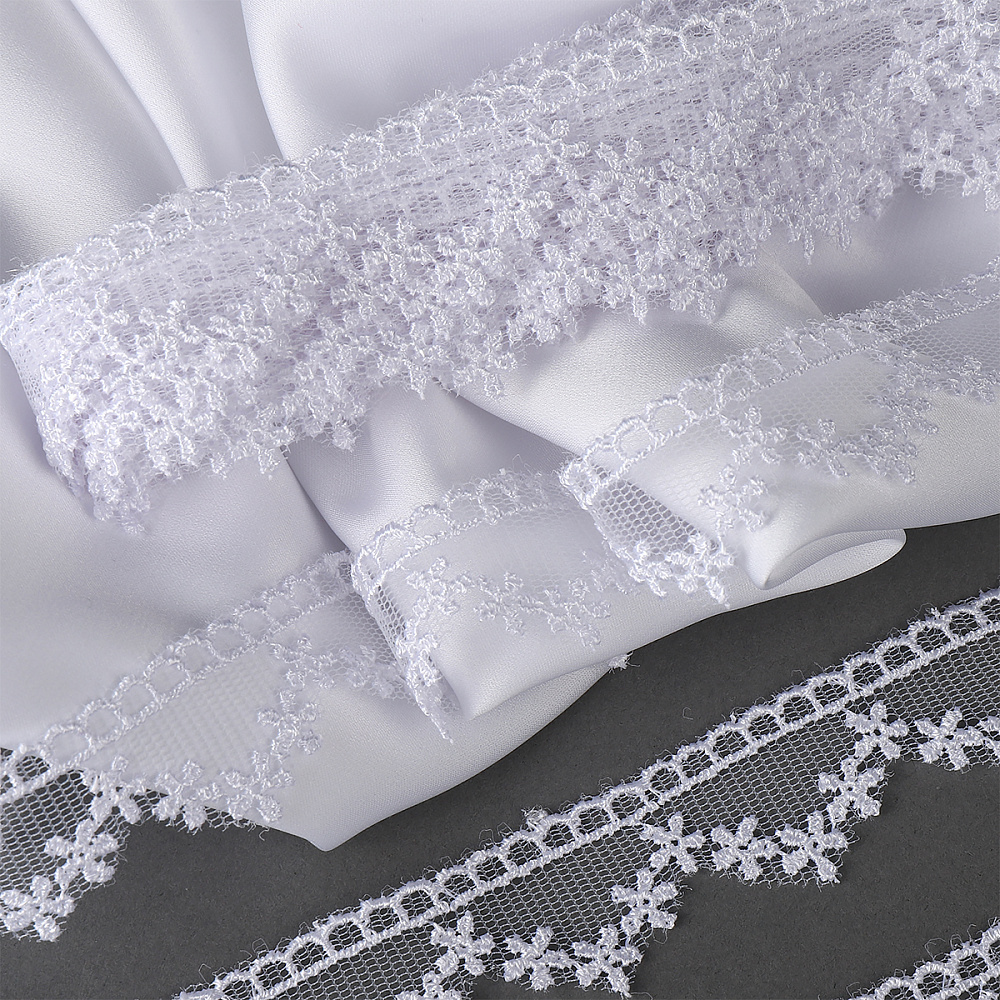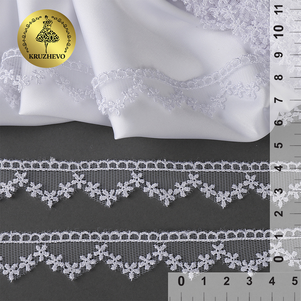 Кружево на сетке 20 мм, диз. 866, цв.01 белый, уп. 9 м, Kruzhevo