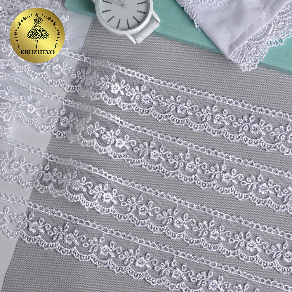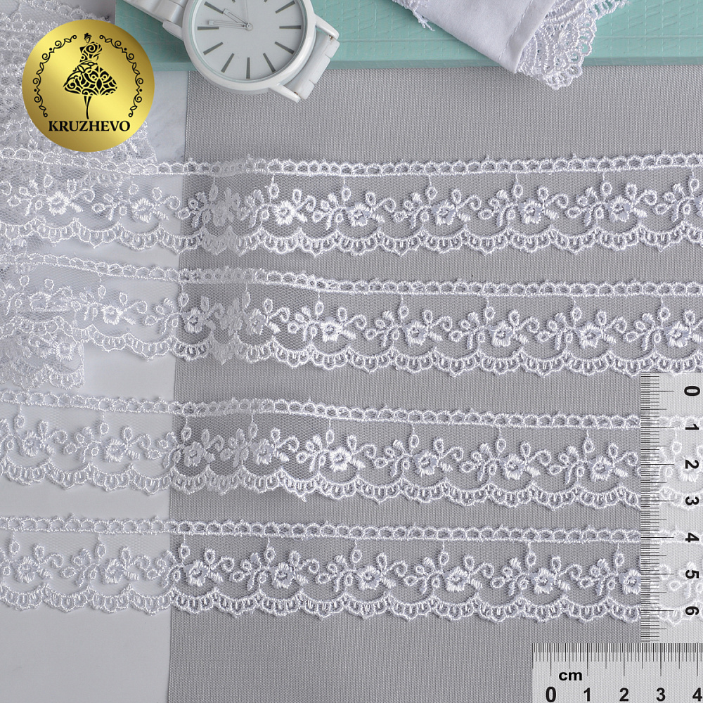 Очень красивое и нежное кружево на мягкой сетке. Воздушное, тонкое, приятное на ощупь. Кружево на сетке подходит, как для шитья, отделки, так и для скрапбукинга, изготовления кукол, свадебных украшений и одежды в стиле эко, бохо и шебби - шик.