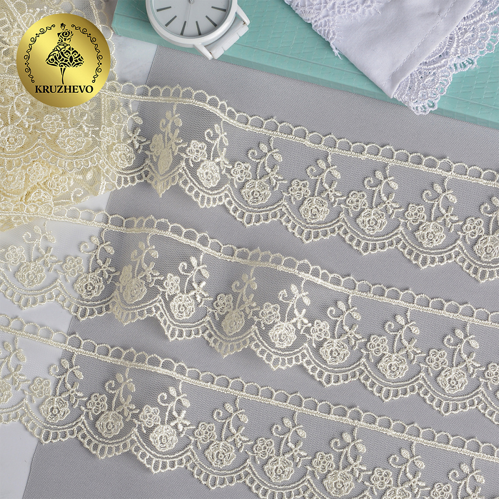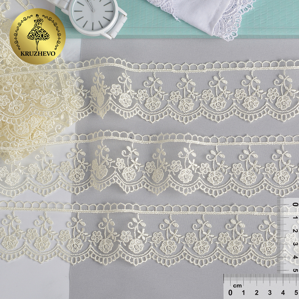 Очень красивое и нежное кружево на мягкой сетке. Воздушное, тонкое, приятное на ощупь. Кружево на сетке подходит, как для шитья, отделки, так и для скрапбукинга, изготовления кукол, свадебных украшений и одежды в стиле эко, бохо и шебби - шик.
