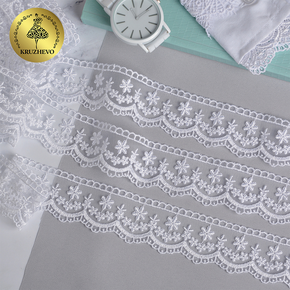 Очень красивое и нежное кружево на мягкой сетке. Воздушное, тонкое, приятное на ощупь. Кружево на сетке подходит, как для шитья, отделки, так и для скрапбукинга, изготовления кукол, свадебных украшений и одежды в стиле эко, бохо и шебби - шик.