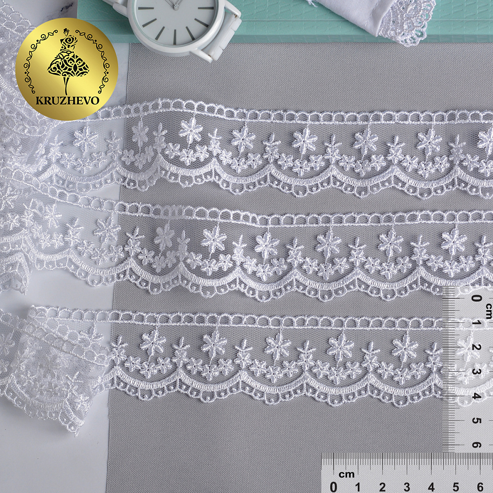 Кружево на сетке 35 мм, диз. 194, цв.01 белый уп. 9 м, Kruzhevo