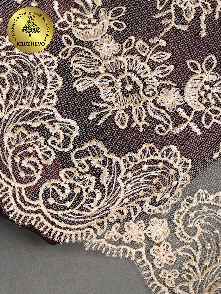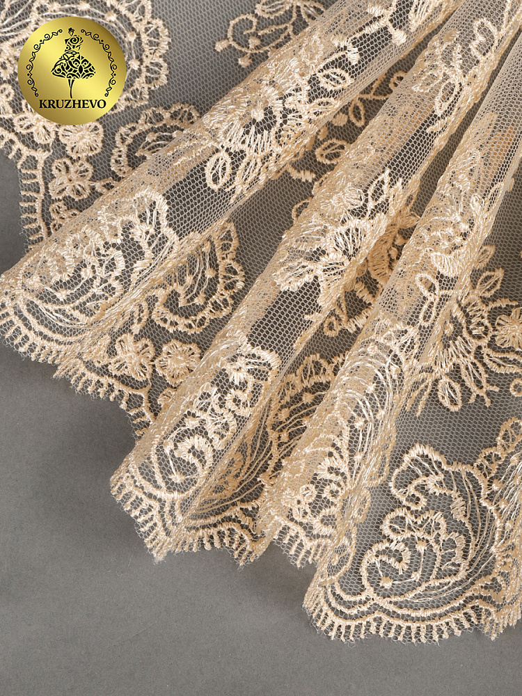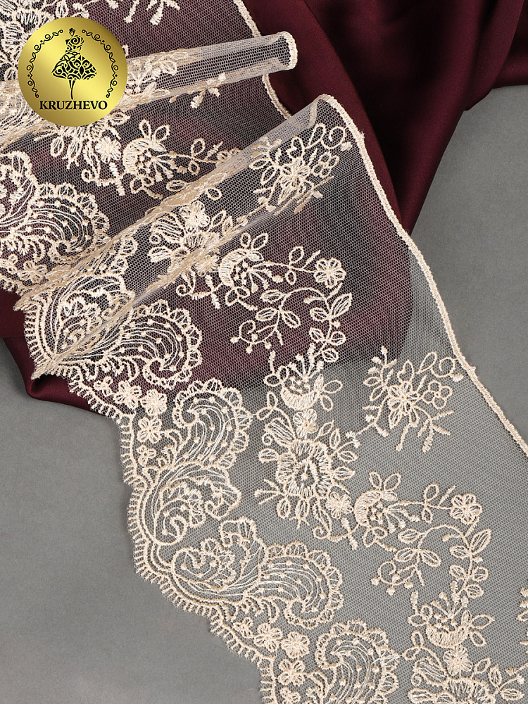 Кружево на сетке с шикарным ажурным орнаментом в стиле Блюмарин от бренда Kruzhevo! Изысканое и воздушное. Вещи, украшенные таким кружевом, становятся изящнее и элегантнее. Идеально подходит для одежды, постельного белья, балдахинов, наборов для крещения и на выписку. Отлично сочетается с сатином!