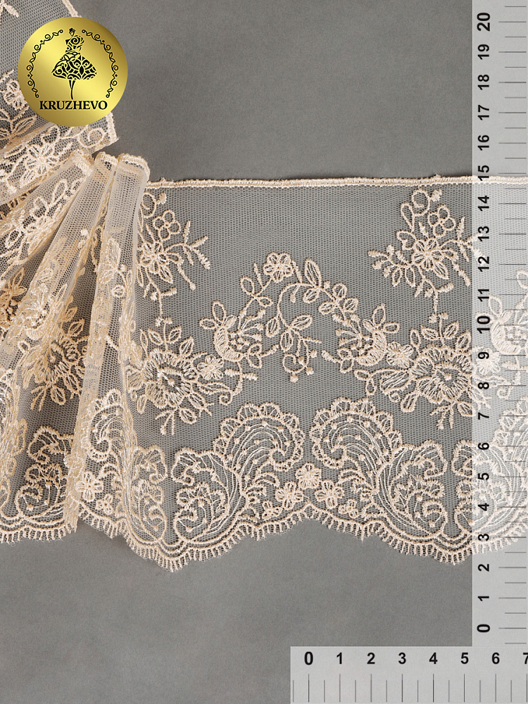 Кружево на сетке 130 мм / 9 метров, TR.BL.40466, бежевый