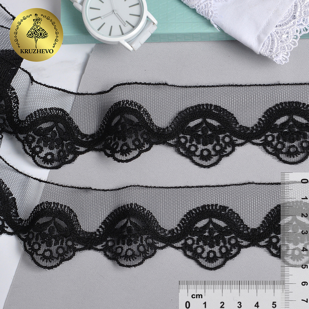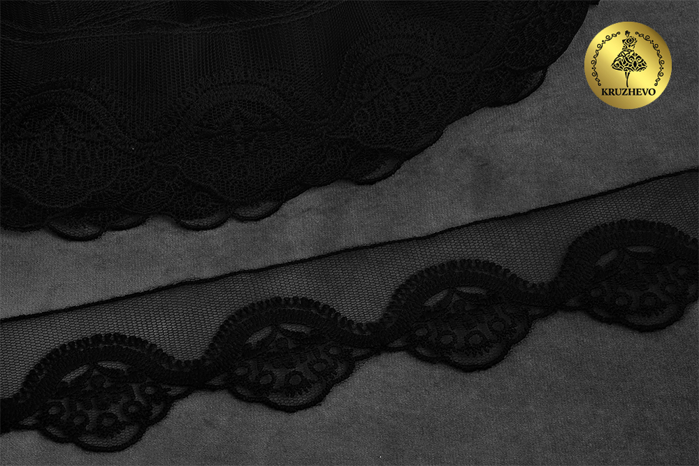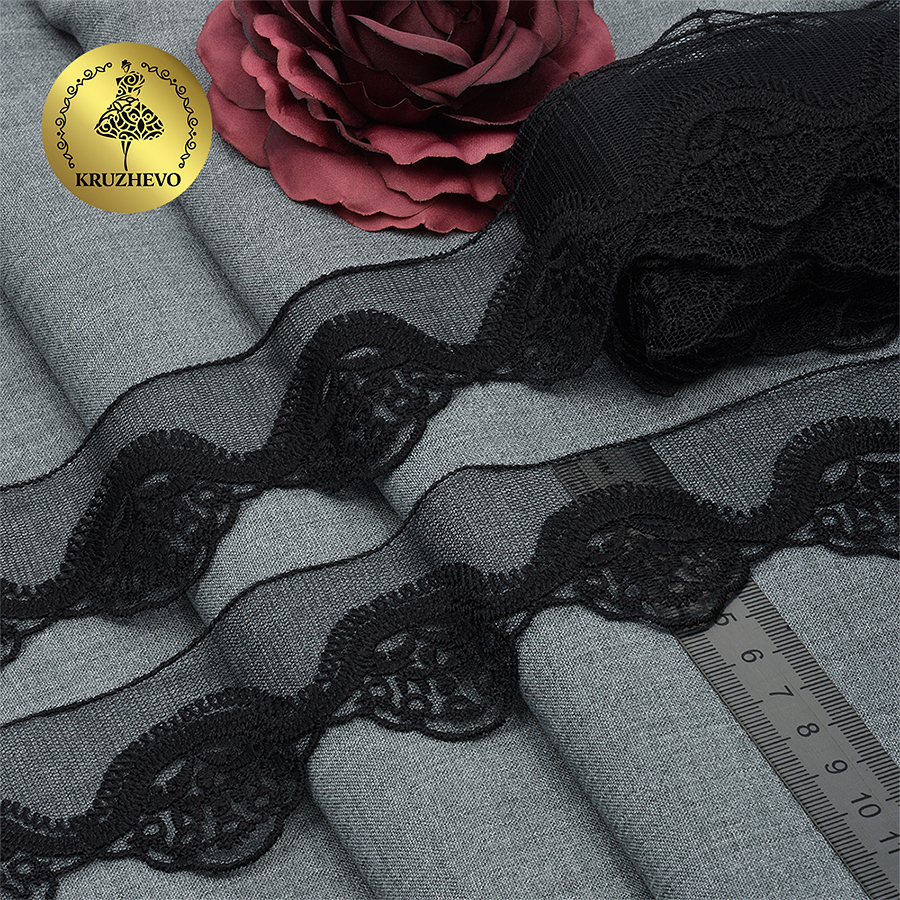 Кружево на сетке 50 мм / 18.28 метров, Ideal Lux (матовая нить), TBY.ZX-2 50мм цв.6 черный уп.18.28м, Kruzhevo
