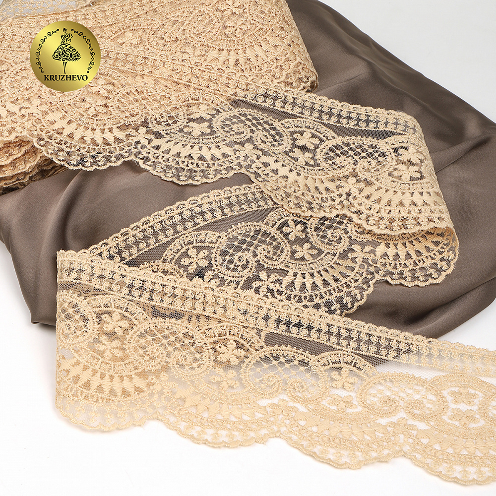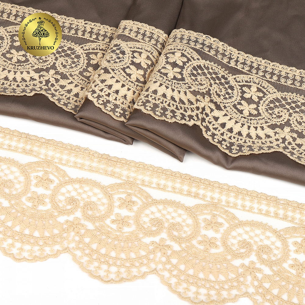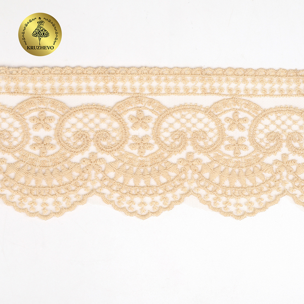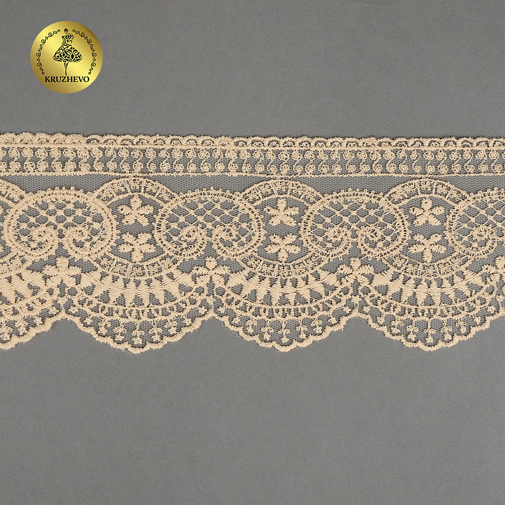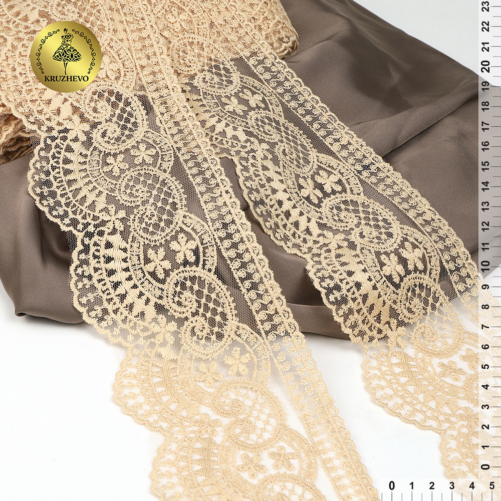 Кружево на сетке 90 мм, 40475, цв.N6115 бежевый уп.13.7м, Kruzhevo