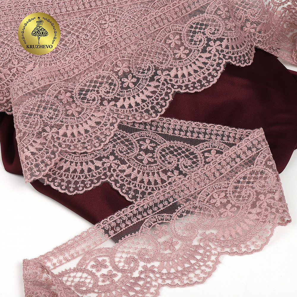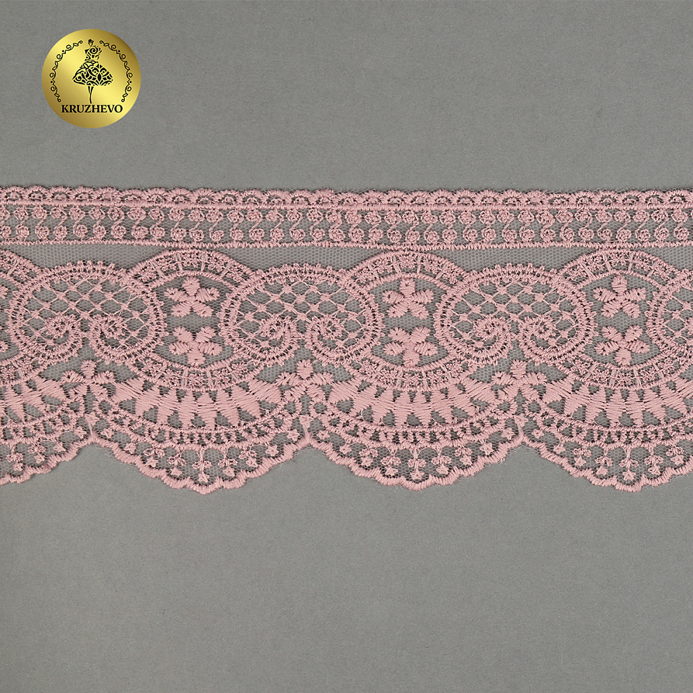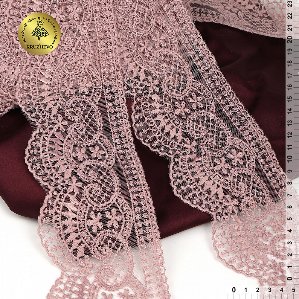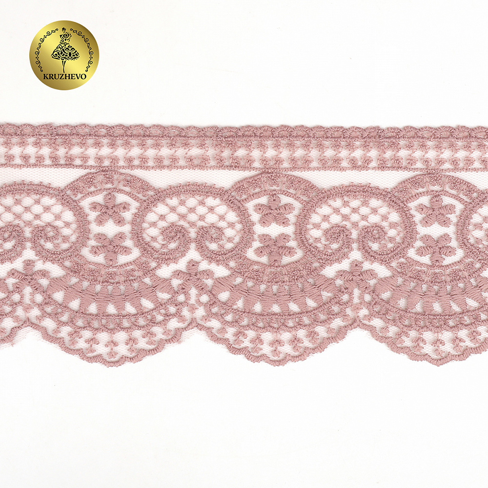 Кружево на сетке 90 мм, 40475, цв.N6615 розовая пудра уп.13.7м, Kruzhevo