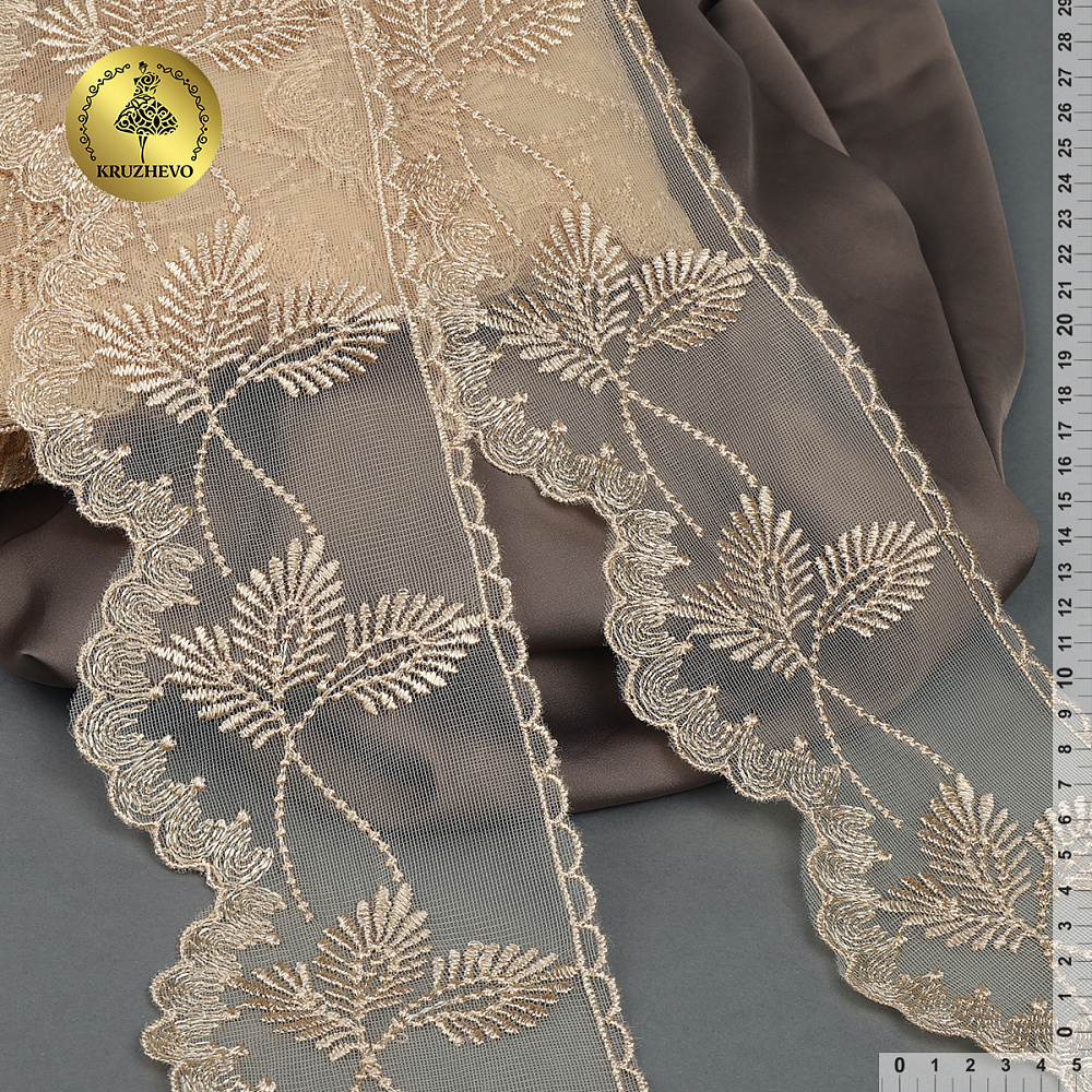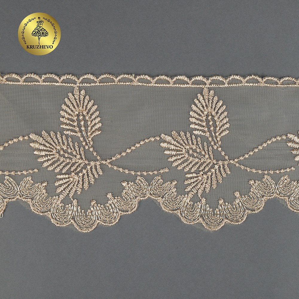 Очень красивый и нежный дизайн кружева на сетке от бренда Kruzhevo. Кружево приятное на ощупь/ качественное. Смотрится очень красиво и нежно. Идеально подойдет для отделки одежды/ домашнего текстиля/ детских конвертов.