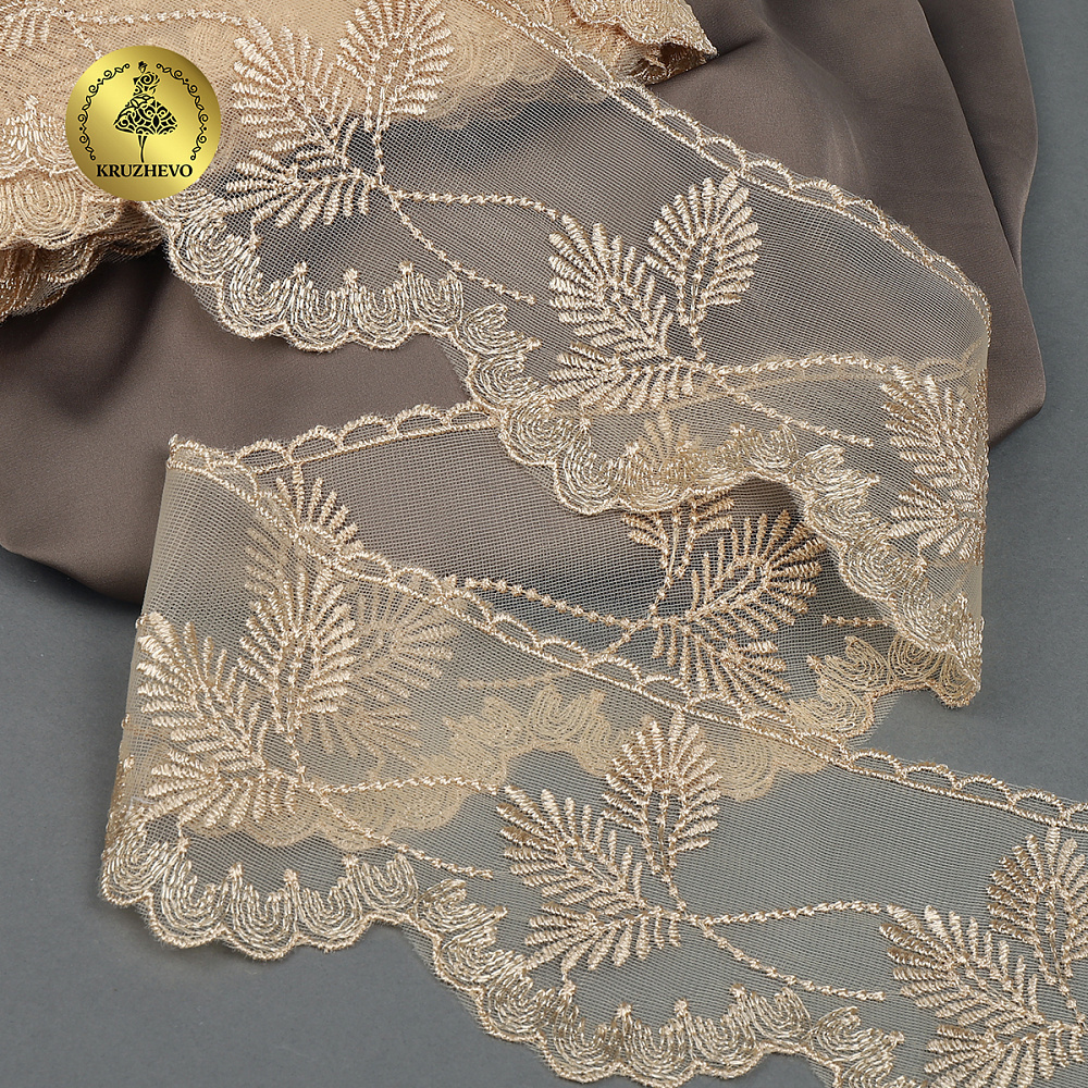 Кружево на сетке широкое 105 мм, 40483, цв.N6115 бежевый уп.13.7м, Kruzhevo