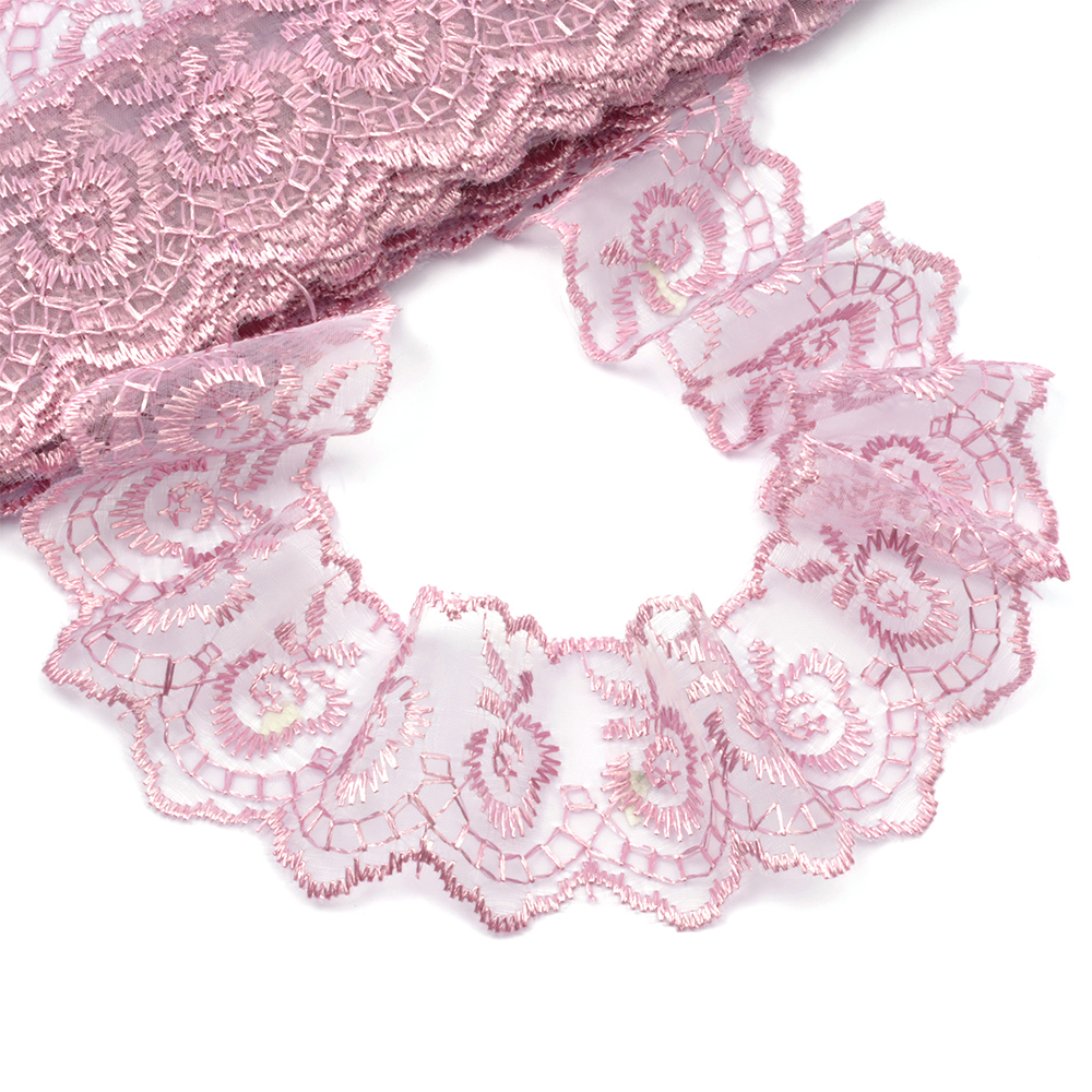Кружево на сетке широкое 105 мм, 40483, цв.N6615 розовая пудра уп.13.7м, Kruzhevo