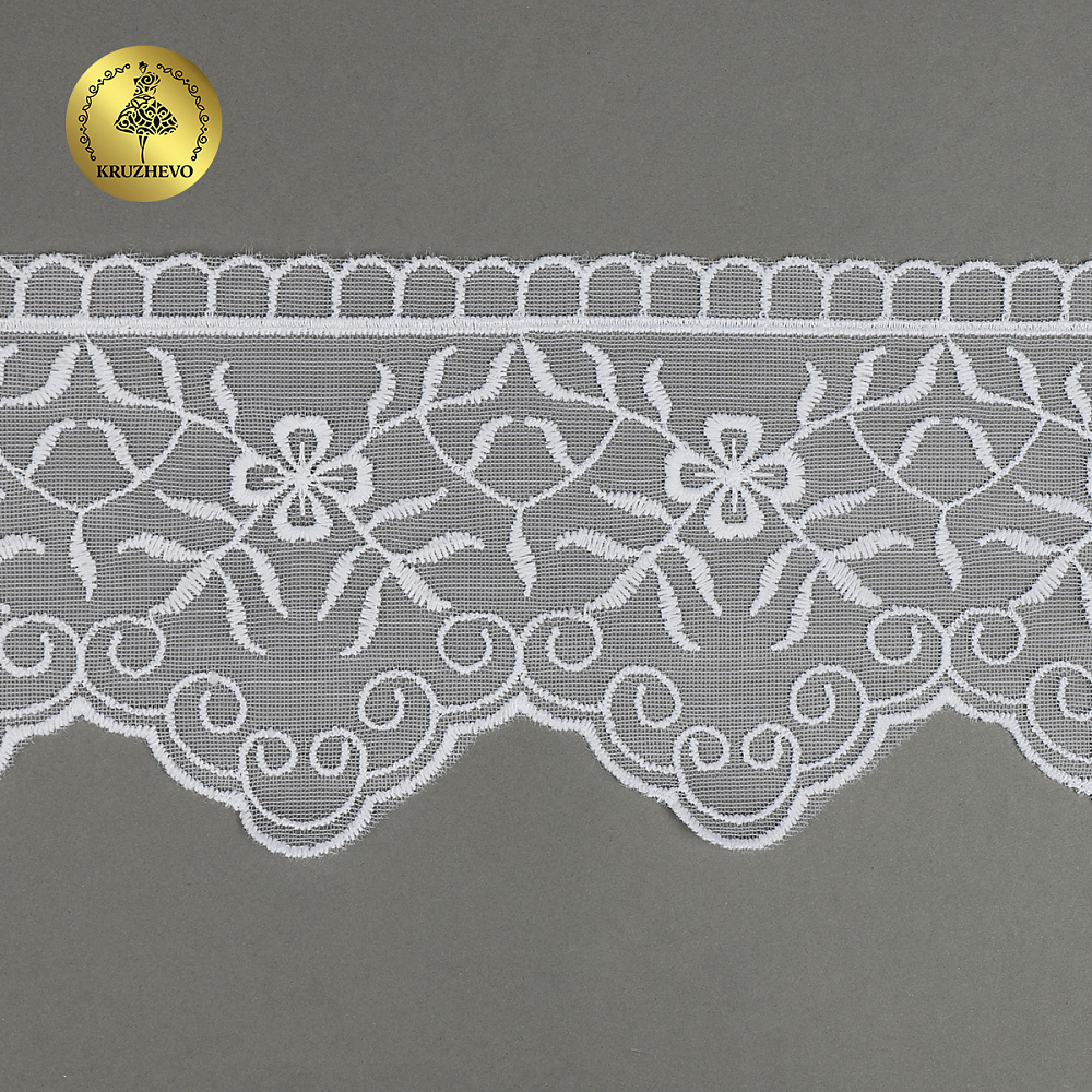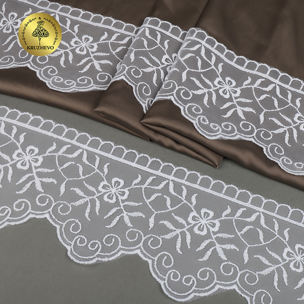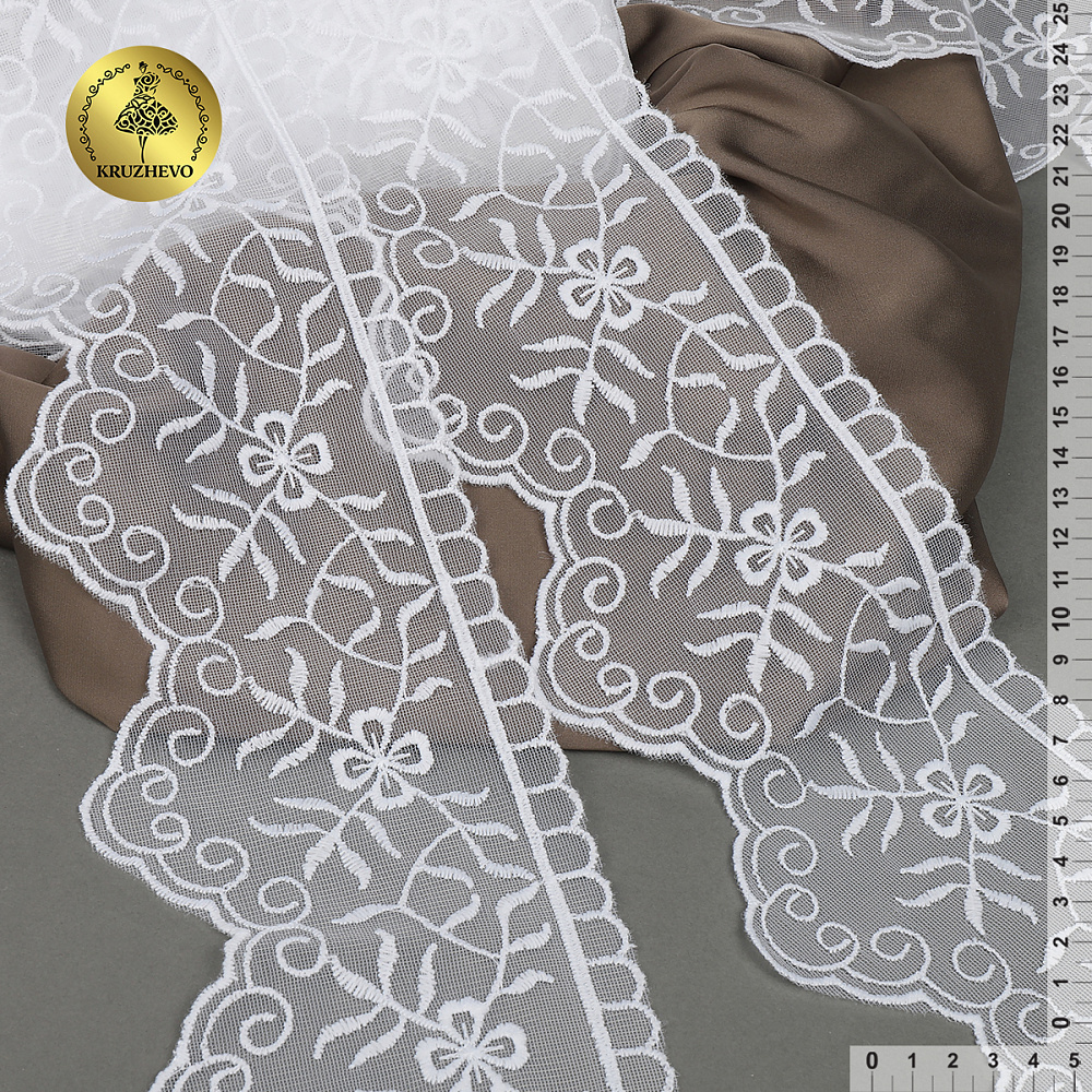 Кружево на сетке широкое 110 мм, 40485, цв.01 белый уп.13.7м, Kruzhevo