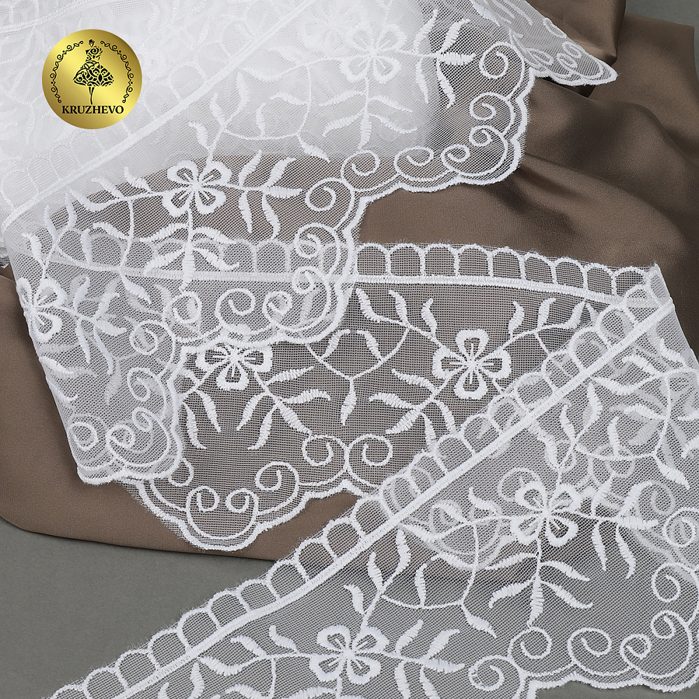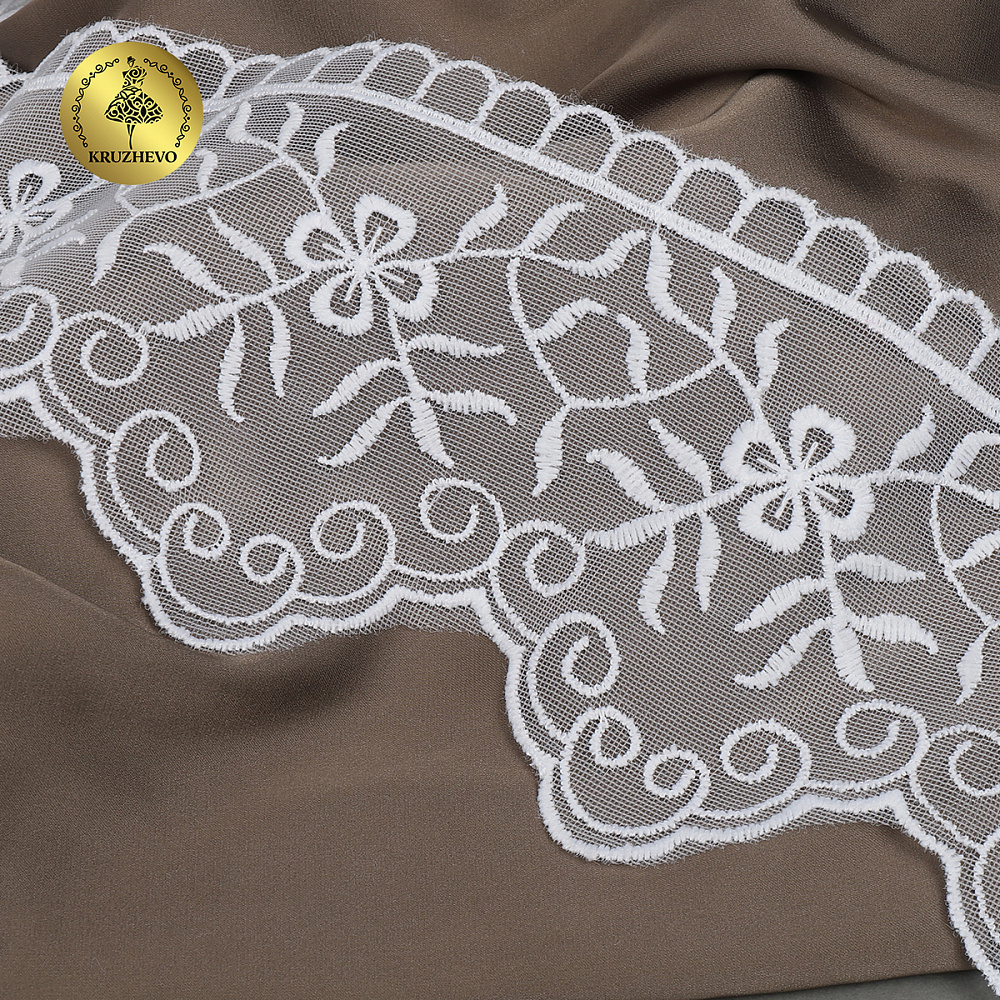 Очень красивый и нежный дизайн кружева на сетке от бренда Kruzhevo. Кружево приятное на ощупь/ качественное. Смотрится очень красиво и нежно. Идеально подойдет для отделки одежды/ домашнего текстиля/ детских конвертов.