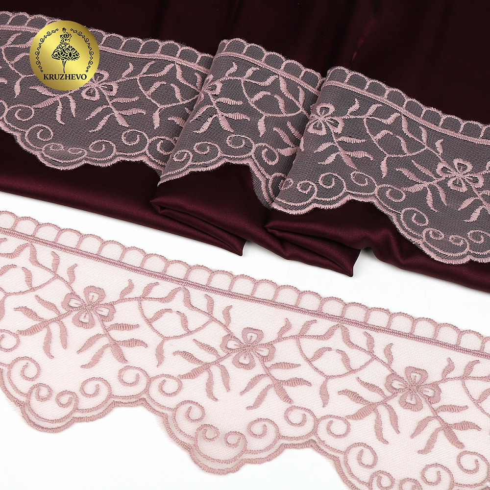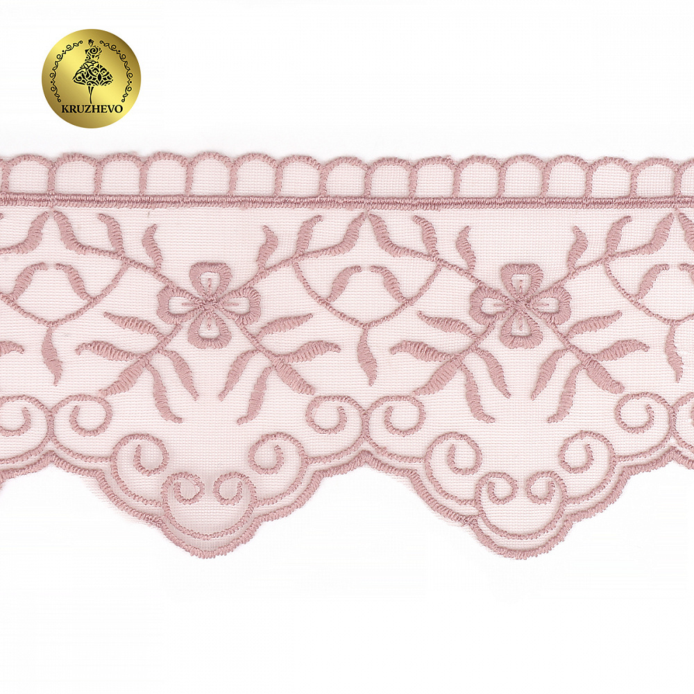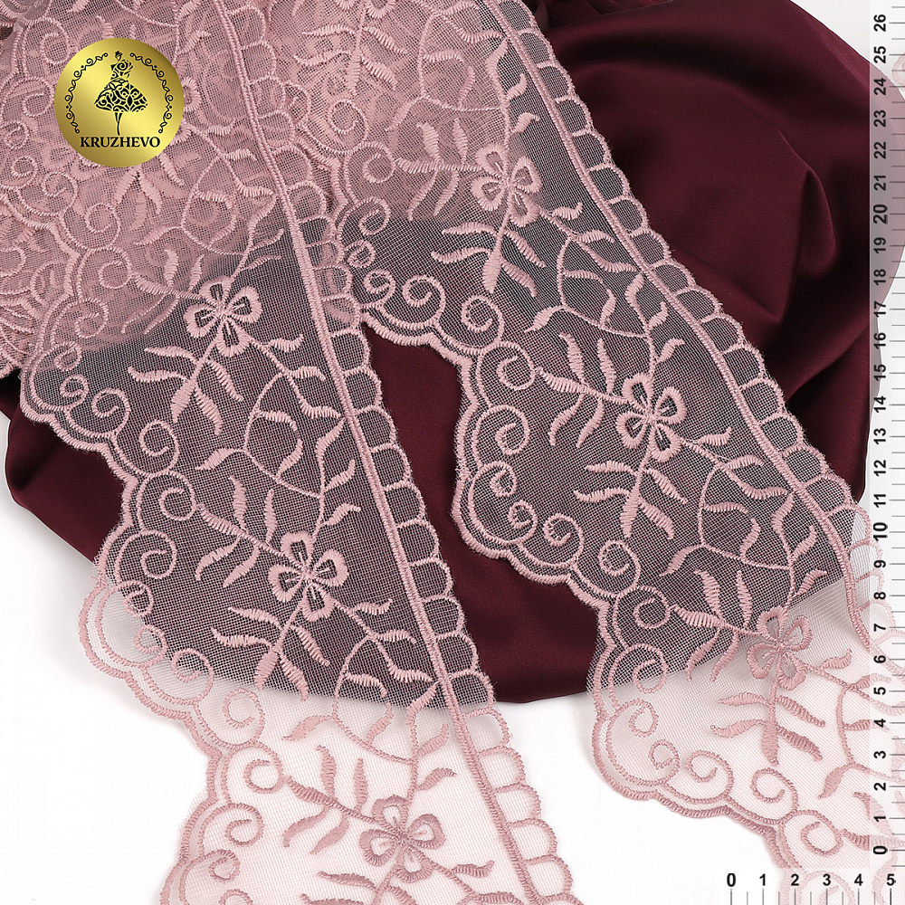 Кружево на сетке широкое 110 мм, 40485, цв.N6615 розовая пудра уп.13.7м, Kruzhevo