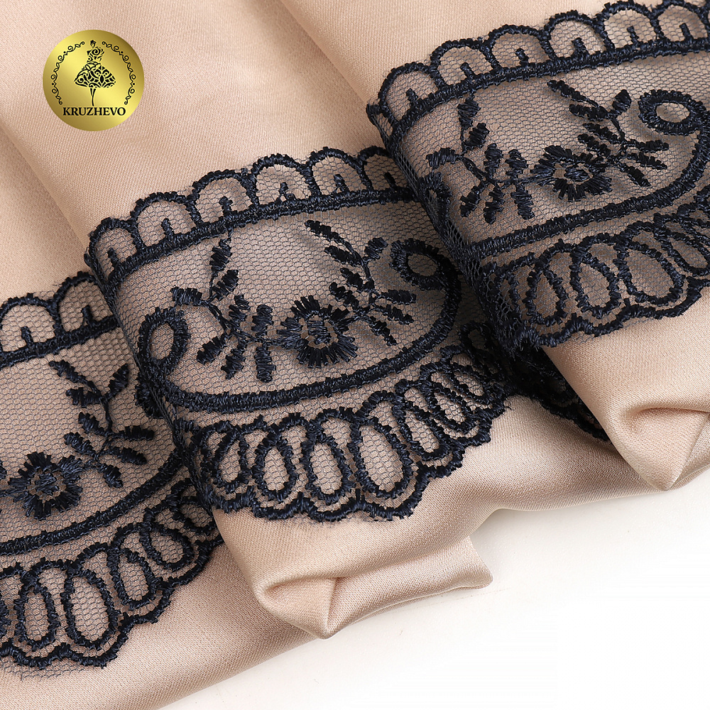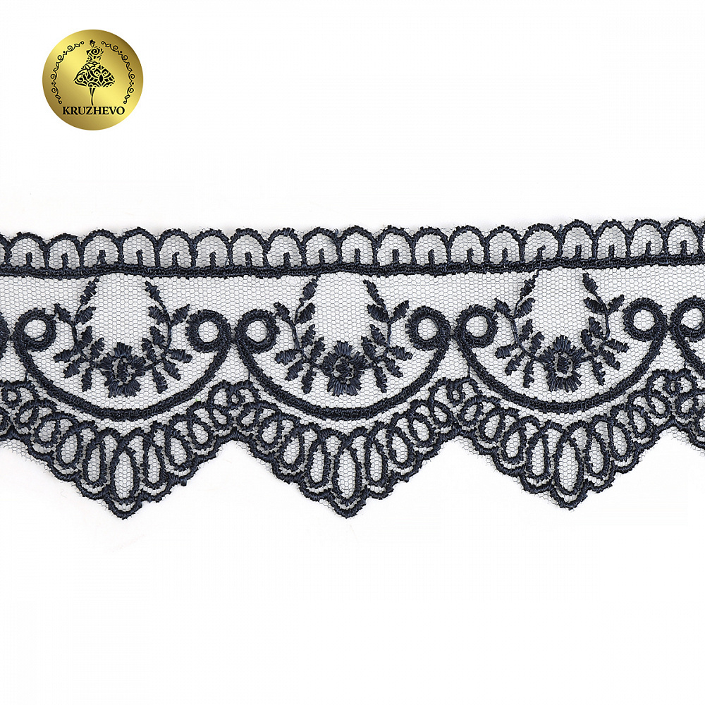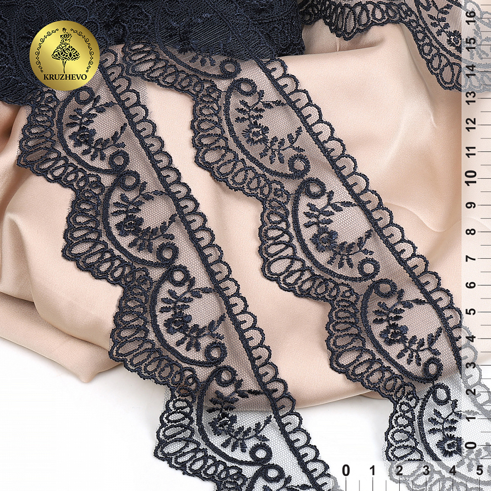 Кружево на сетке 50 мм, TR.1158A, 03 т.синий, 12м, Kruzhevo