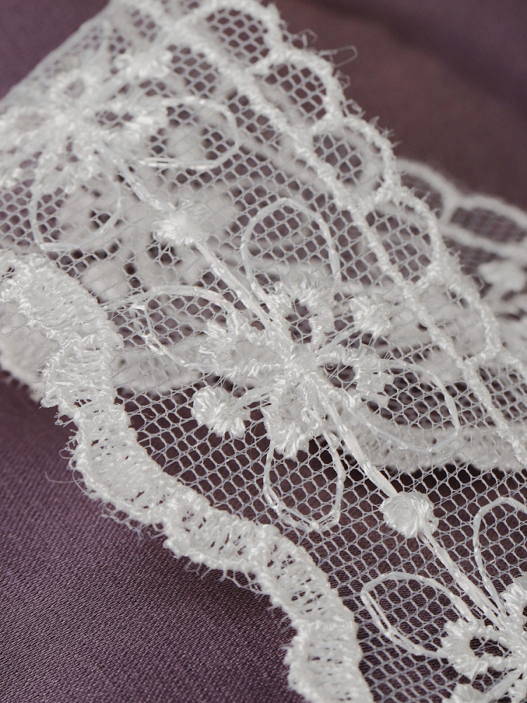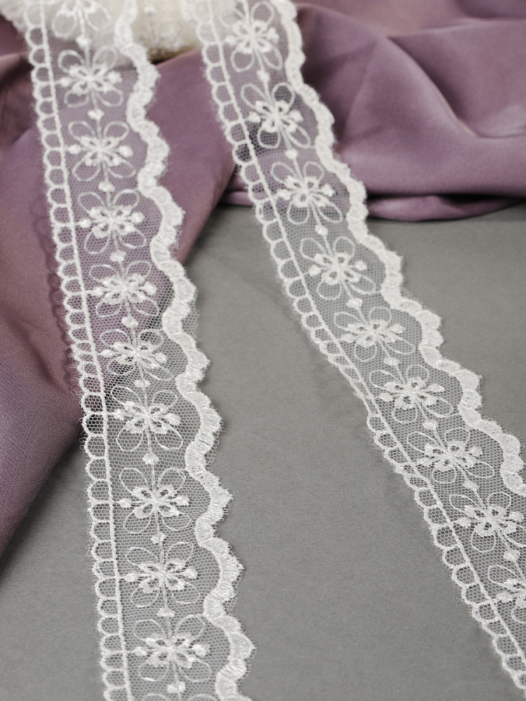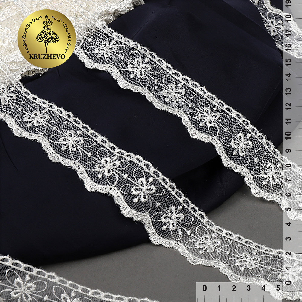 Очень красивое и нежное кружево на мягкой сетке. Воздушное, тонкое, приятное на ощупь. Кружево на сетке подходит, как для шитья, отделки, так и для скрапбукинга, изготовления кукол, свадебных украшений и одежды в стиле эко, бохо и шебби-шик.