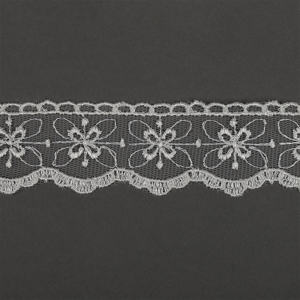 Кружево на сетке 35 мм, TR.2106, цв.02 молочный уп.12м, Kruzhevo