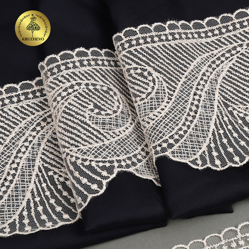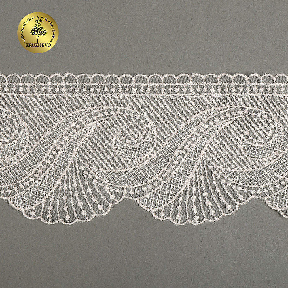Очень красивое и нежное кружево на мягкой сетке от бренда Kruzhevo. Воздушное, тонкое, приятное на ощупь. Кружево на сетке подходит, как для шитья, отделки, так и для скрапбукинга, изготовления кукол, свадебных украшений и одежды в стиле эко, бохо и шебби-шик.