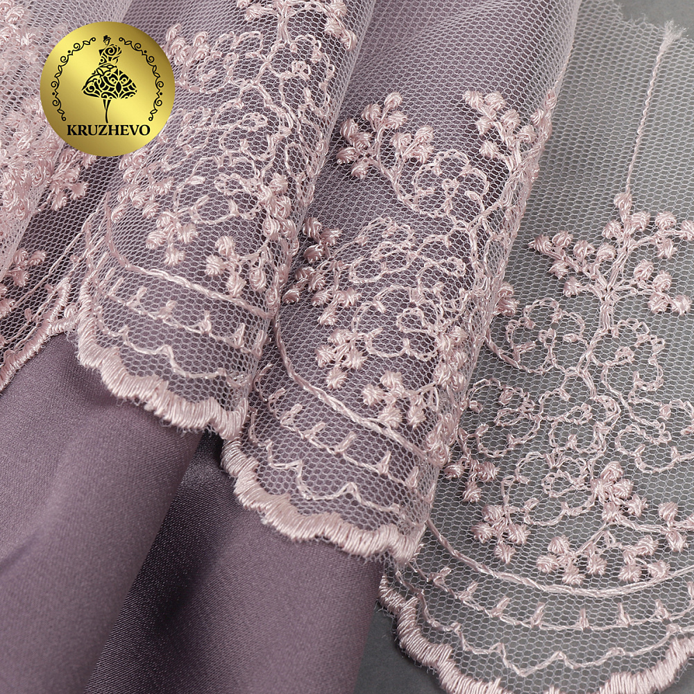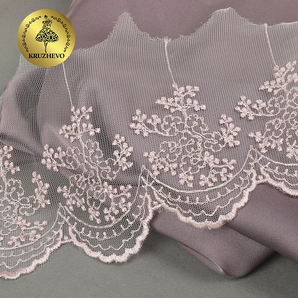 Кружево на сетке с шикарным ажурным орнаментом от бренда Kruzhevo. Тонкое и воздушное. Изысканность кружева на сетке позволяет придать любому изделию шарм и элегантность.