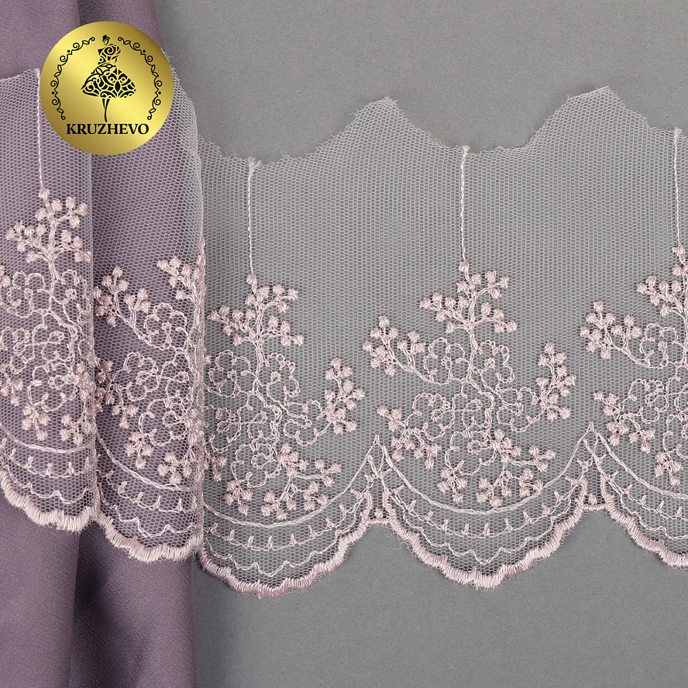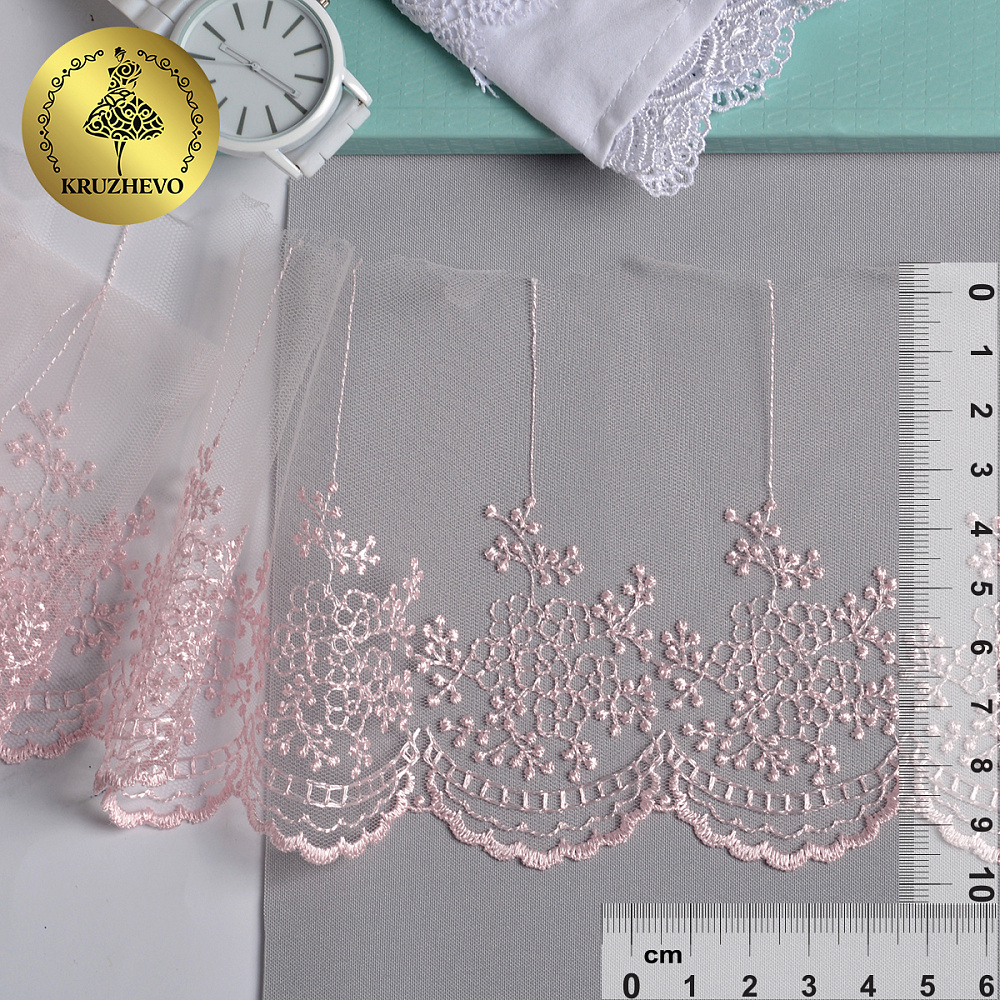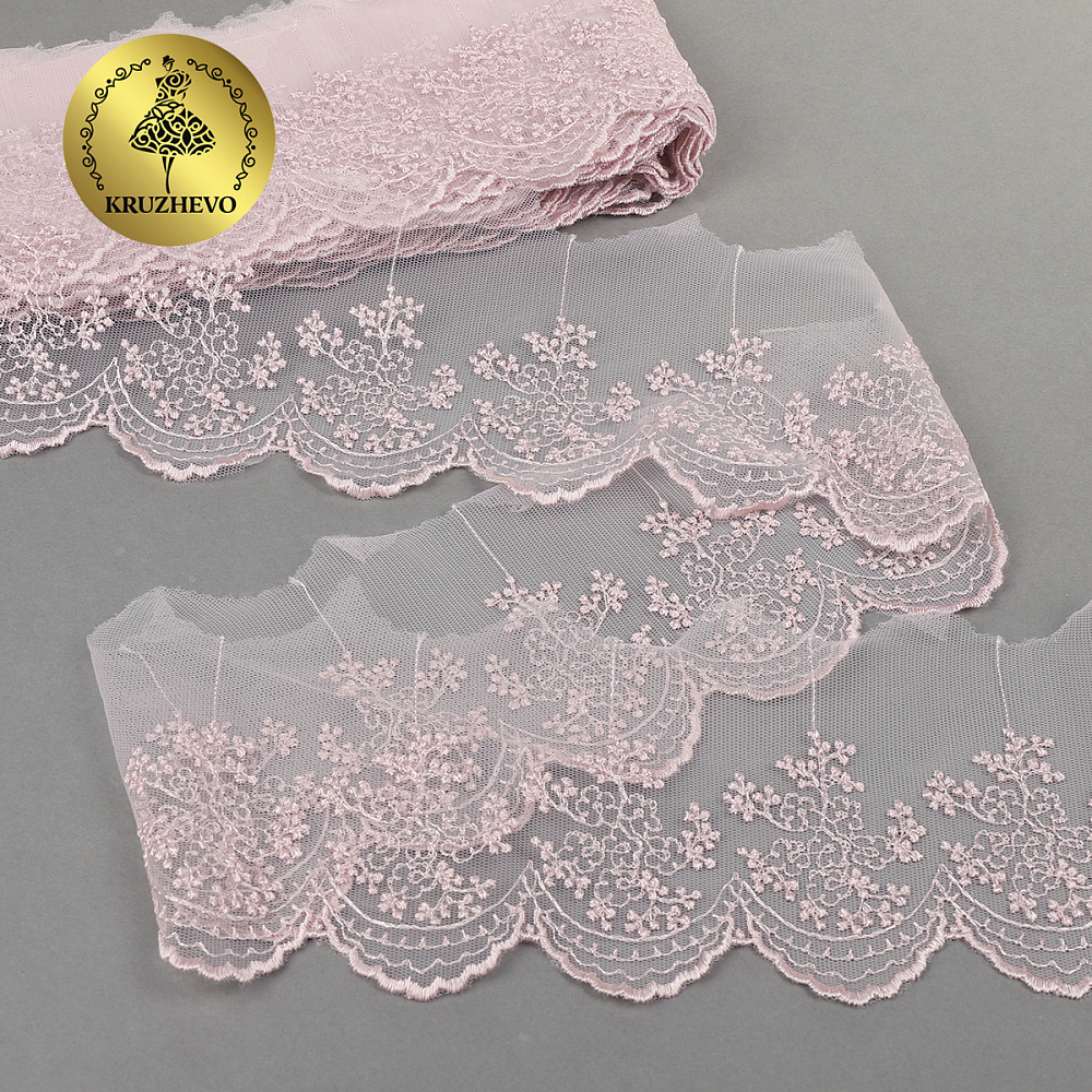 Кружево на сетке широкое 100 мм, TR.3657, цв.06 розовая пудра уп.9м, Kruzhevo