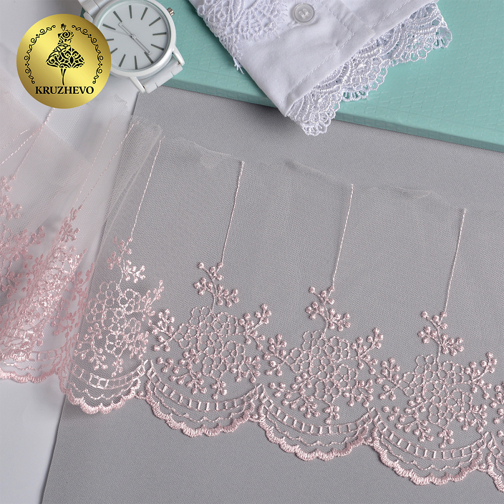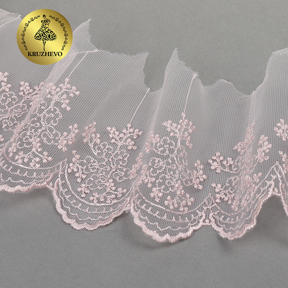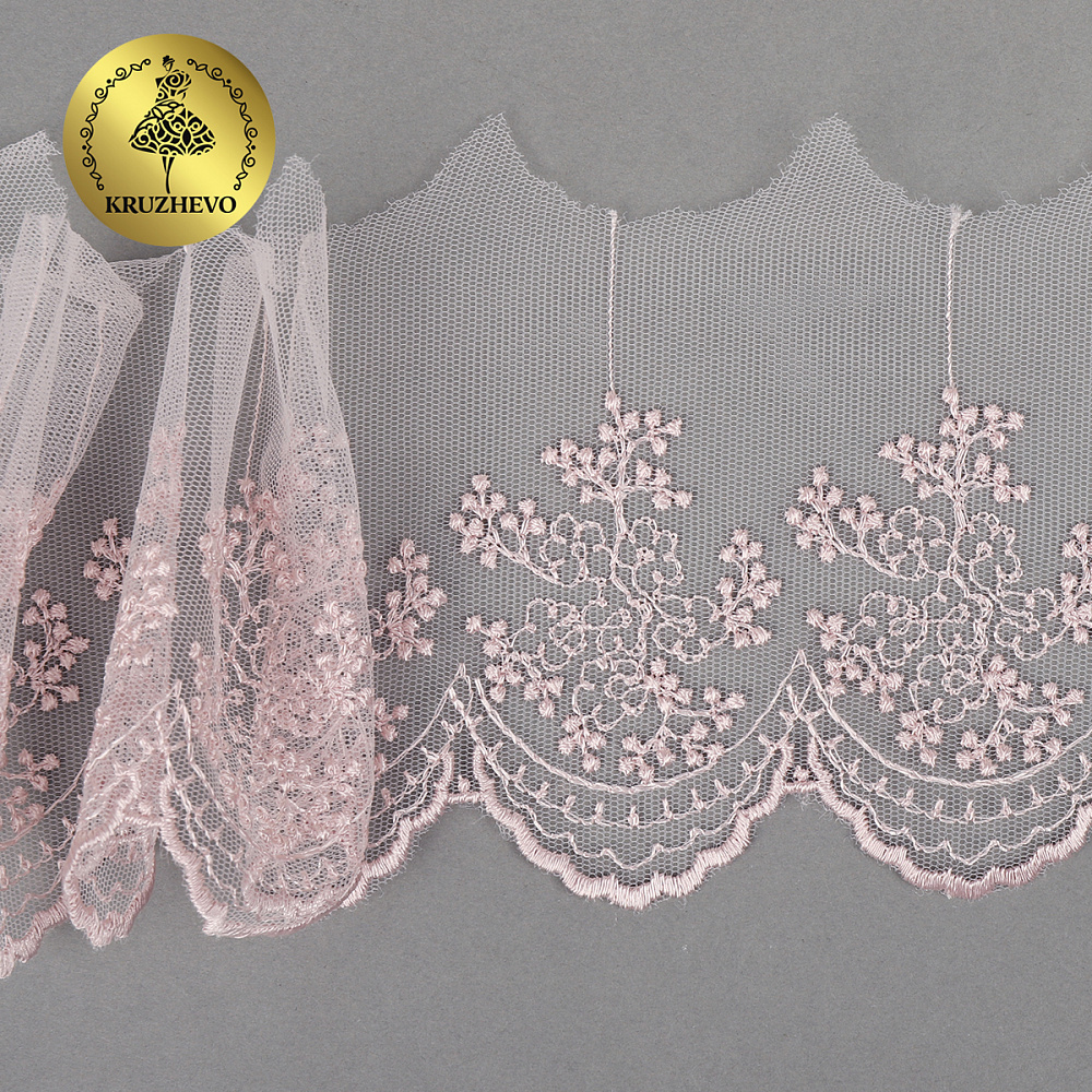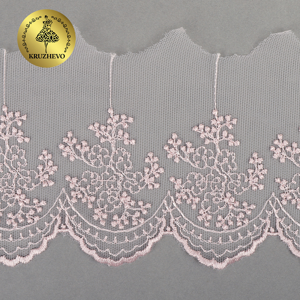 Кружево на сетке широкое 100 мм, TR.3657, цв.06 розовая пудра уп.9м, Kruzhevo