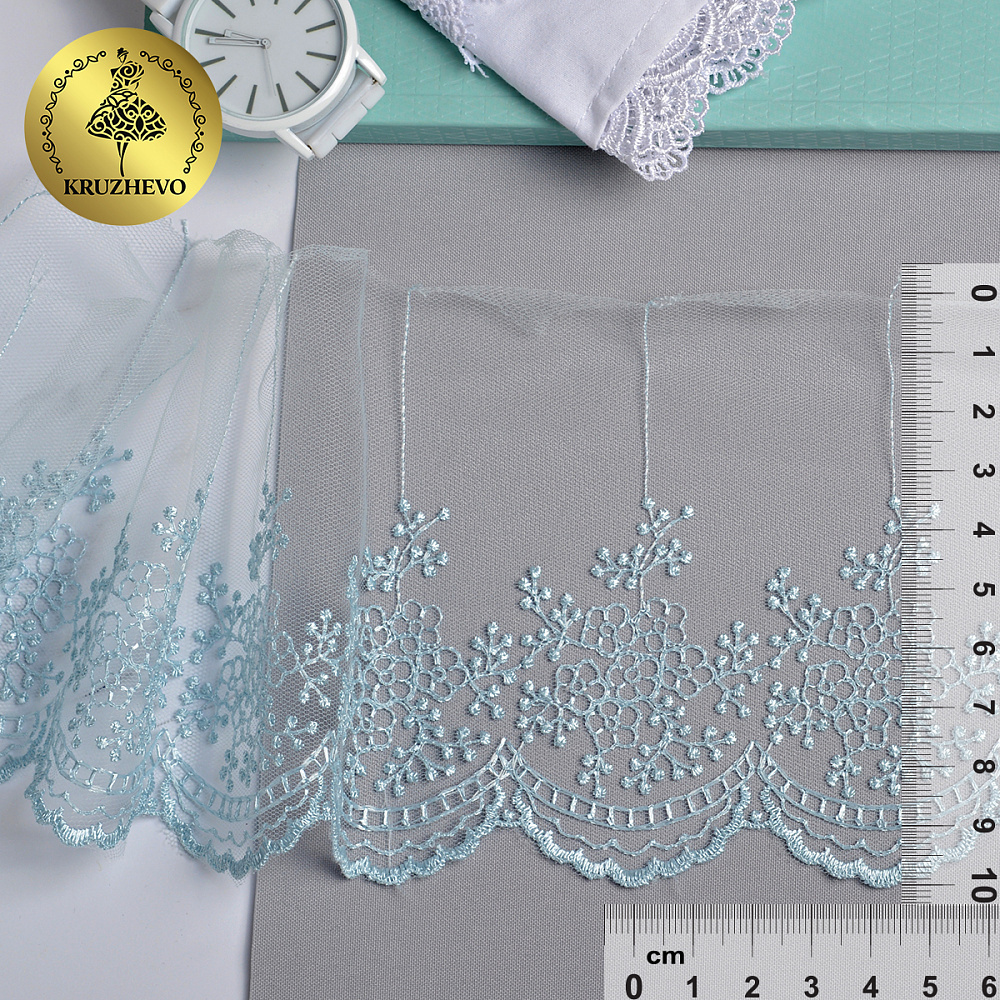 Кружево на сетке широкое 100 мм, диз. 178, цв.07 голубой, уп. 9 м, Kruzhevo