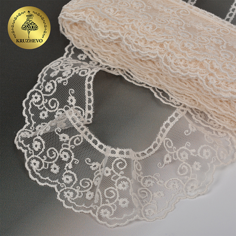 Очень красивое и нежное кружево на мягкой сетке. Воздушное, тонкое, приятное на ощупь. Кружево на сетке подходит, как для шитья, отделки, так и для скрапбукинга, изготовления кукол, свадебных украшений и одежды в стиле эко, бохо и шебби - шик.