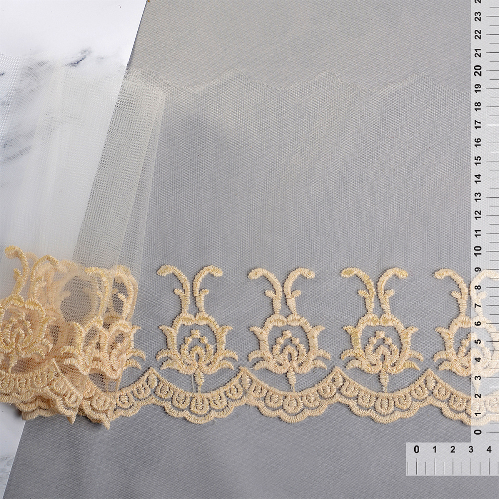 Кружево на сетке с матовой нитью 200 мм, цв.молочный уп. 27,4 м, Kruzhevo