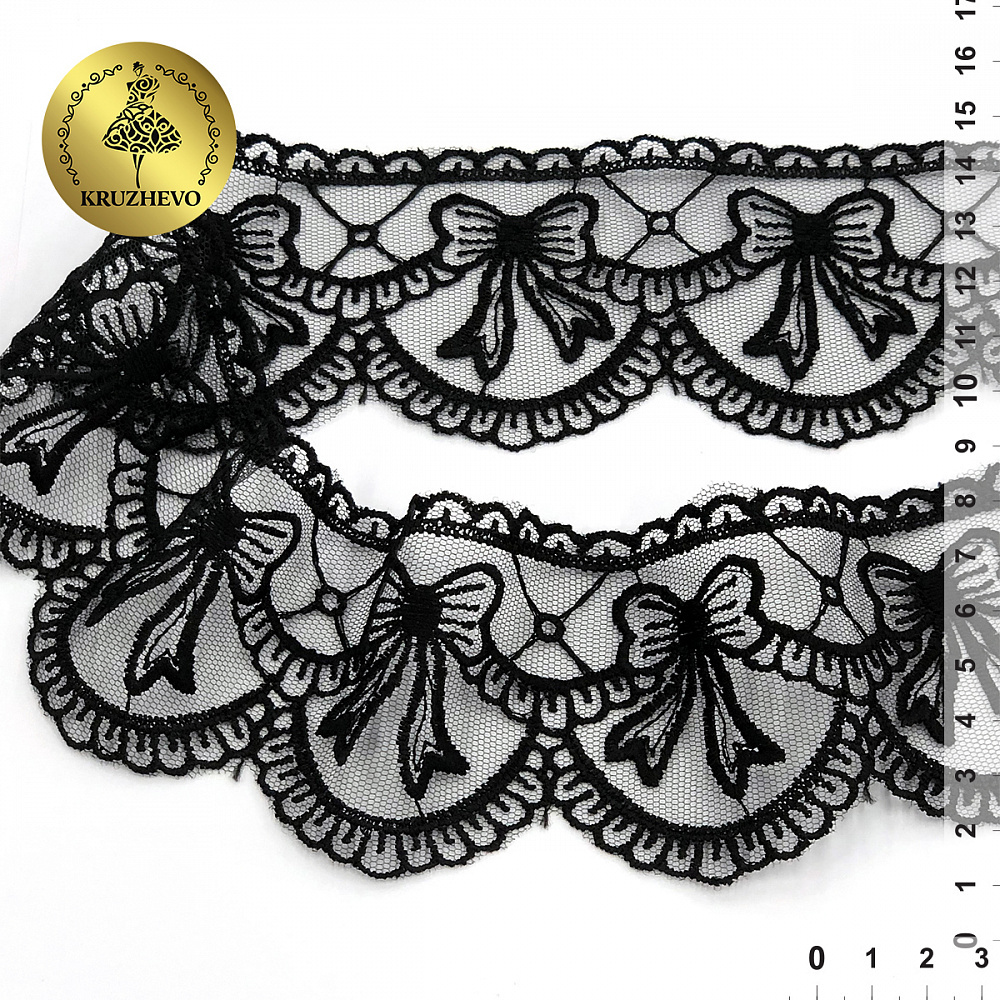 Кружево на сетке с матовой нитью с бантиками 60 мм, цв.06 черный уп. 13.71 м, Kruzhevo
