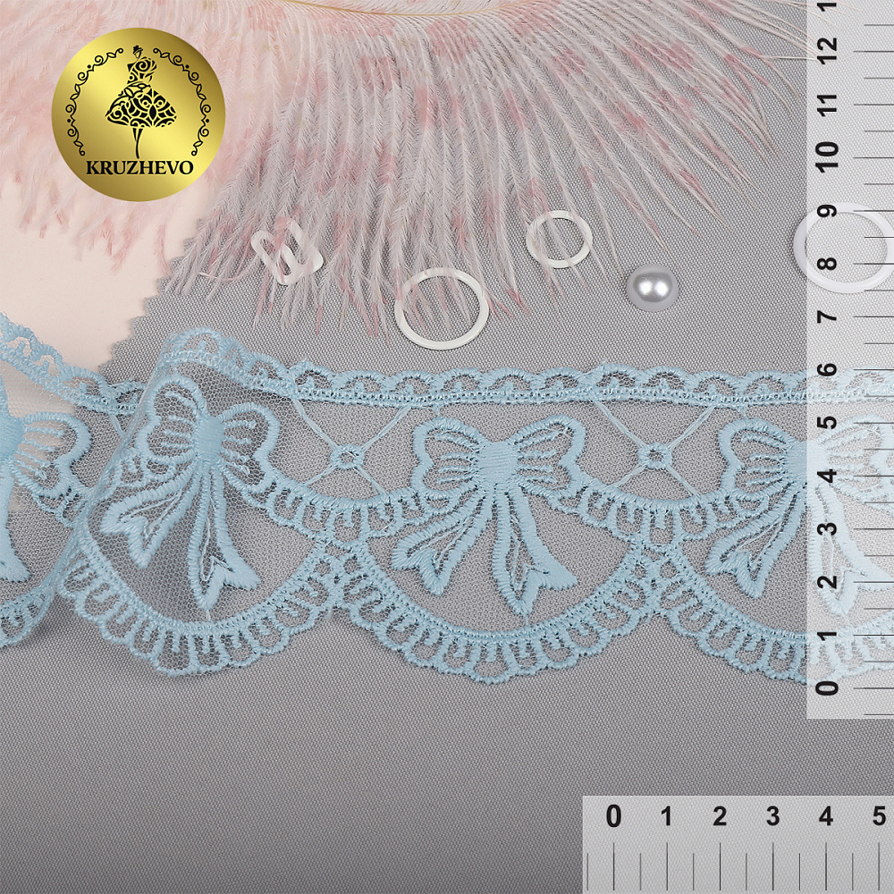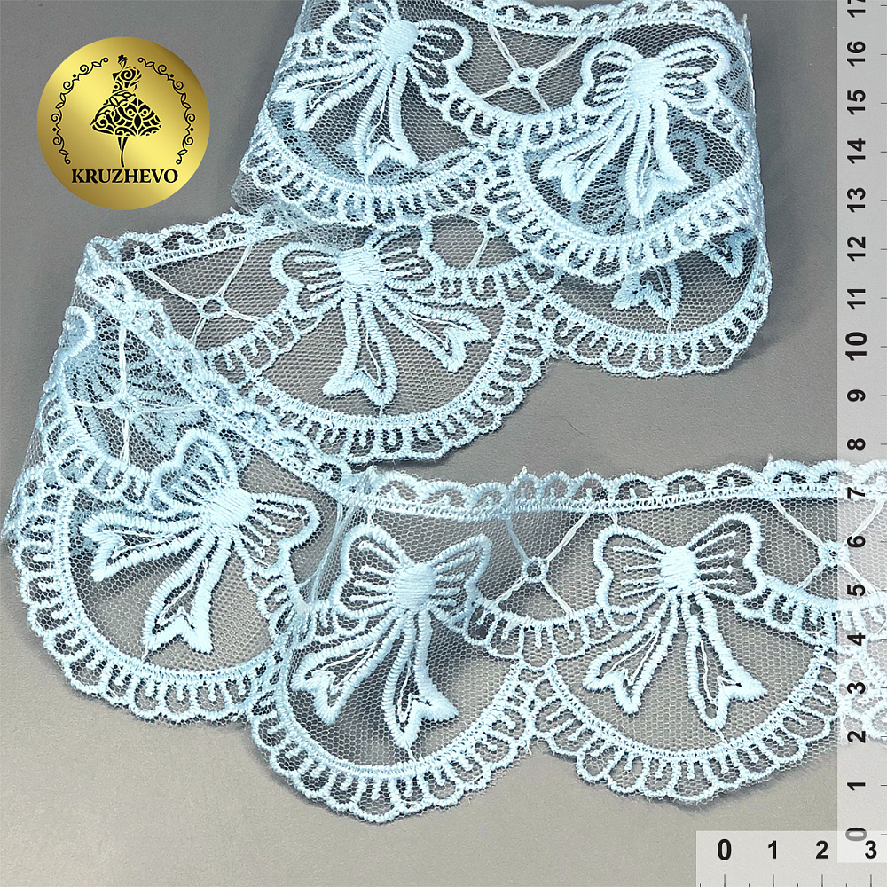 Кружево на сетке с матовой нитью с бантиками 60 мм, диз. 196, цв.голубой уп. 13.71 м, Kruzhevo