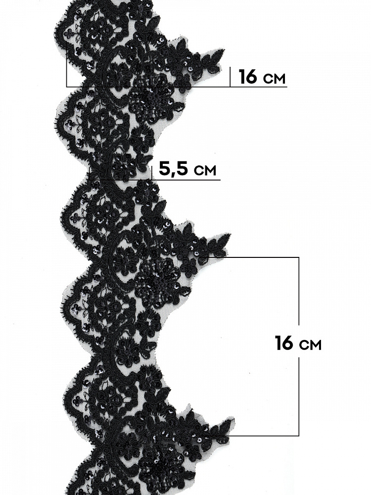 Кружево на сетке 110 мм / 2 метра, с пайетками, TBY G1232, цв.черный, Kruzhevo