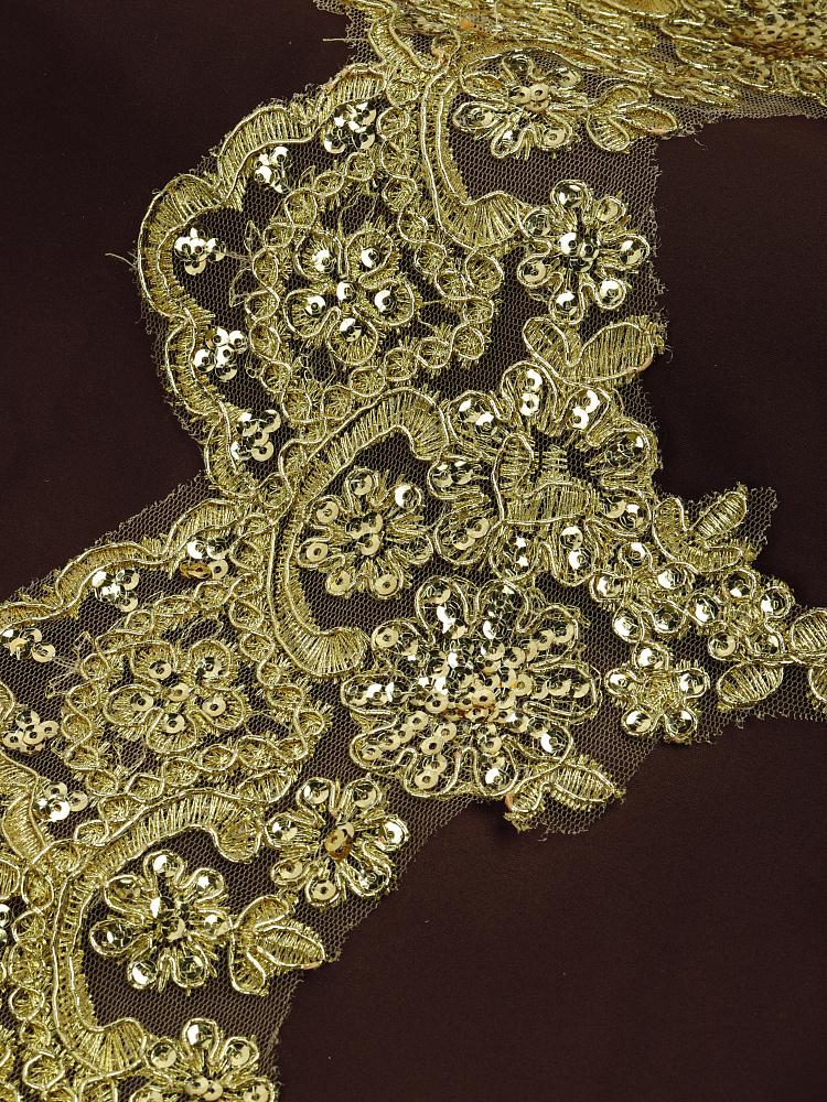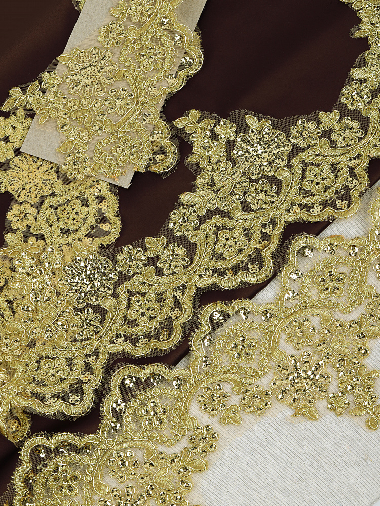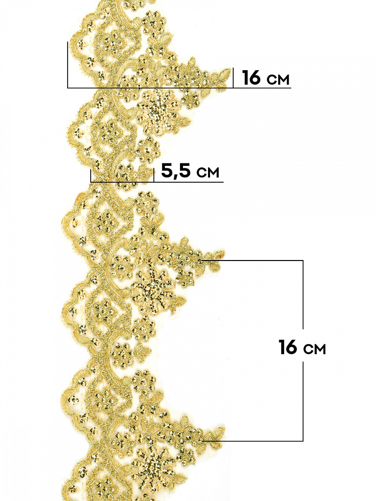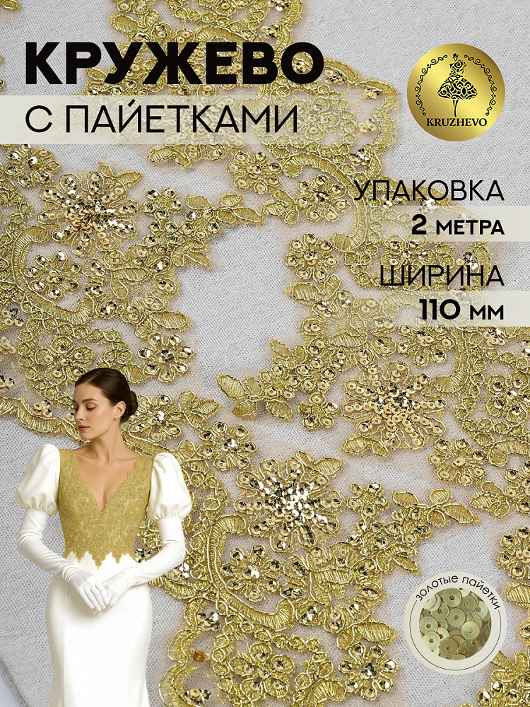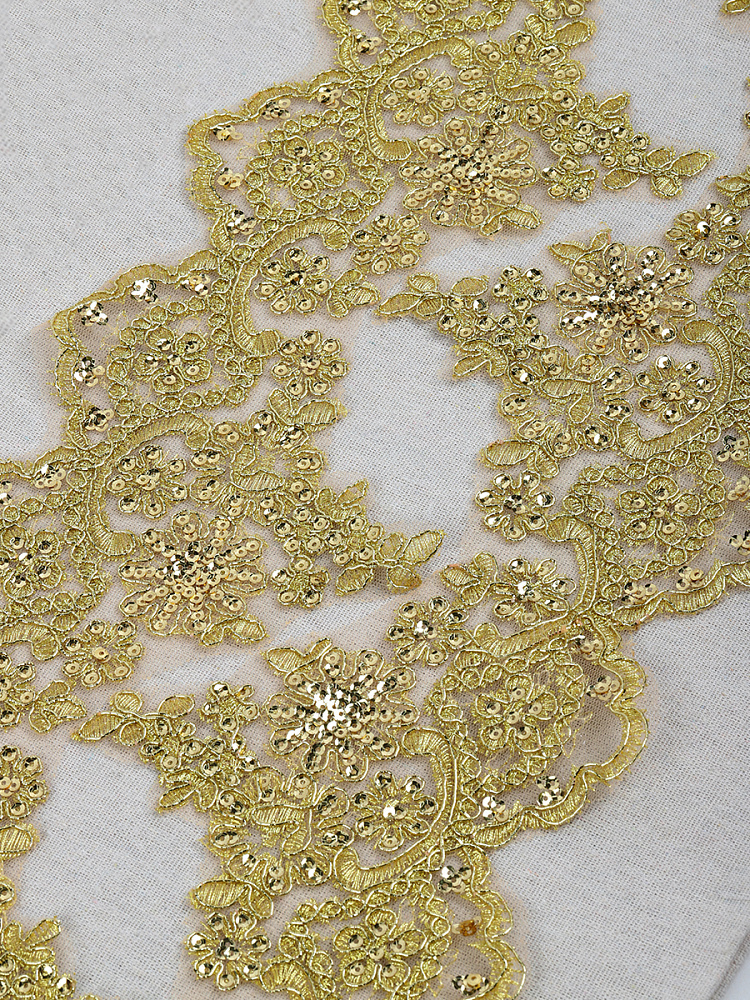 Кружево на сетке 110 мм / 2 метра, с пайетками, TBY G1232, цв.золото, Kruzhevo