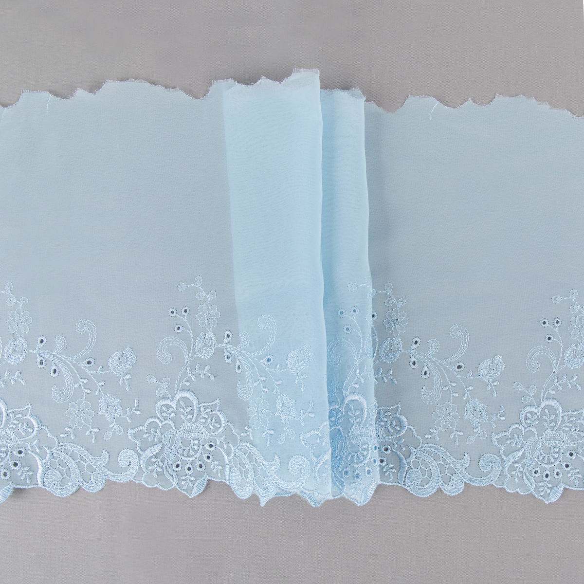 Кружево на сетке (шифон) 190 мм / 10 м, Турция, SF006BLU (042) голубой, Gamma SHKM-19002