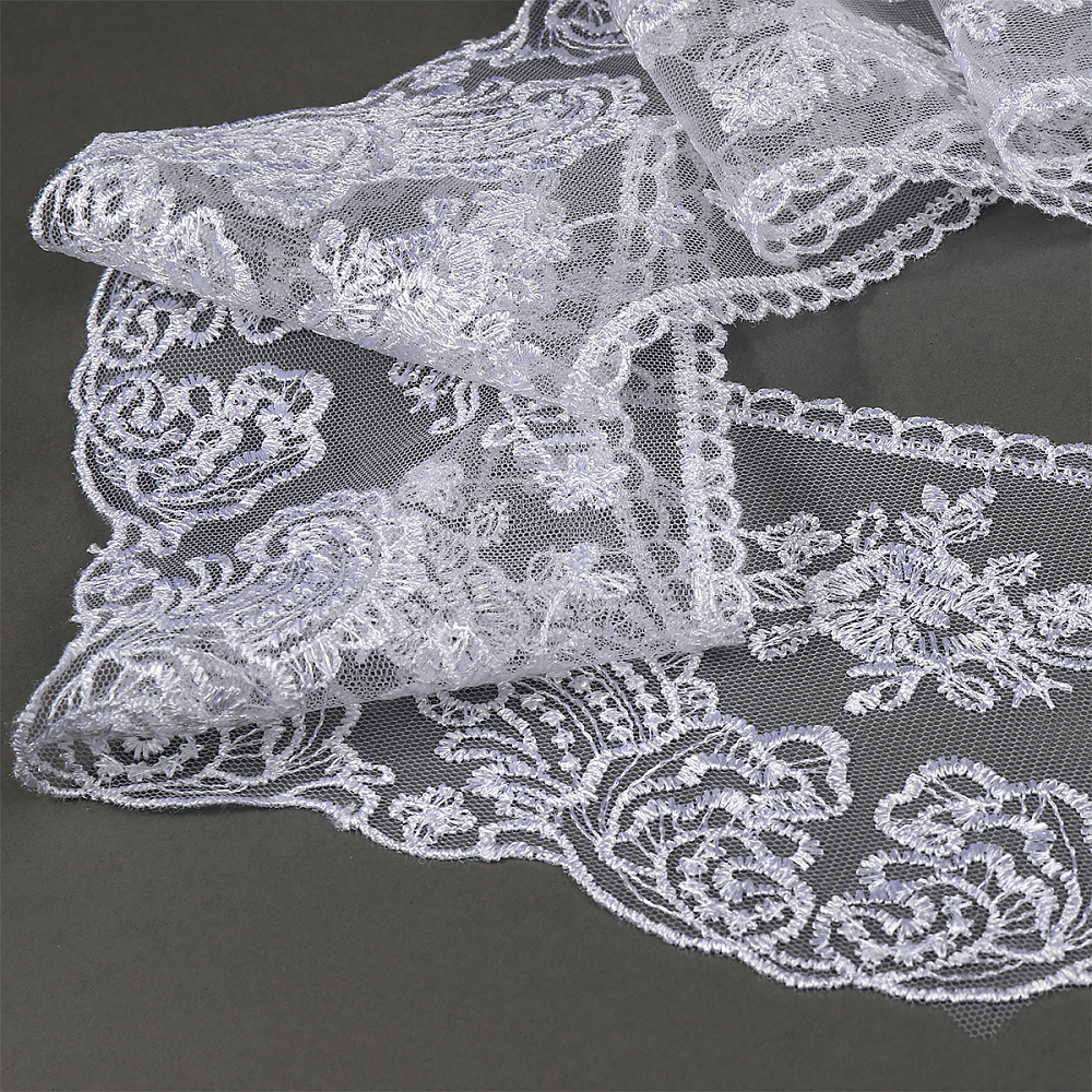 Кружево на сетке широкое 105 мм, диз 021, цв.12 белый, уп.13.71 м, Kruzhevo
