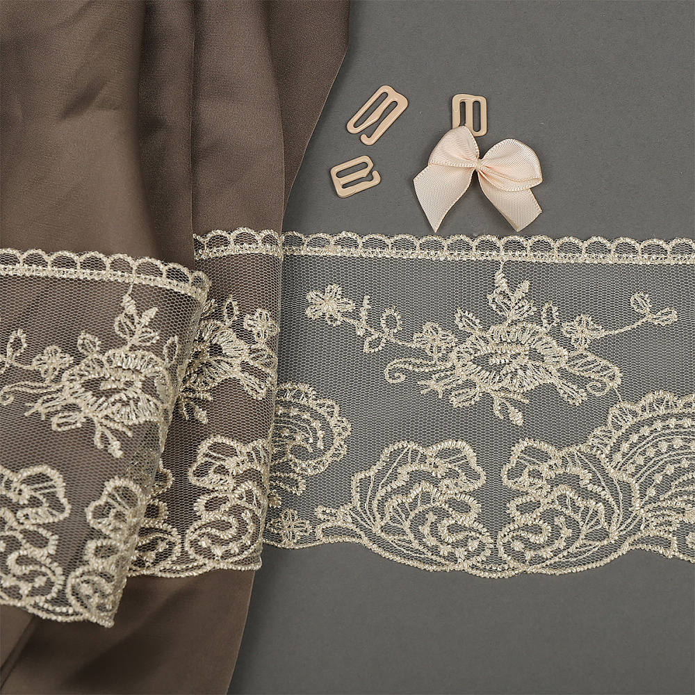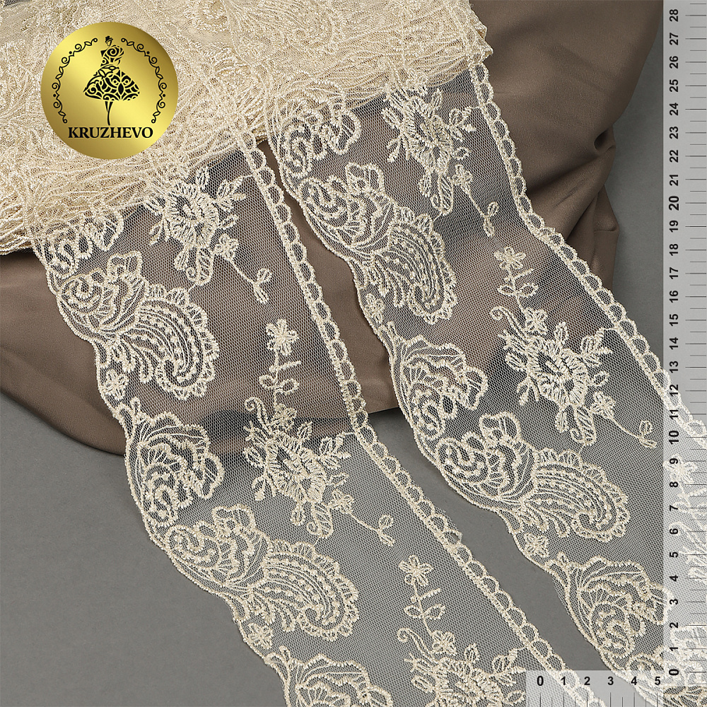 Кружево на сетке широкое 105 мм, BL.40467, цв.бежевый, уп.13.71м, Kruzhevo