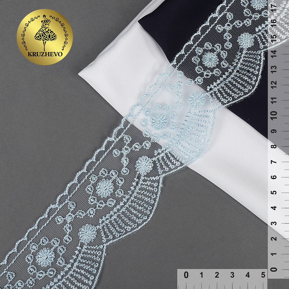 Кружево на сетке 55 мм / 13.71 метра (жесткая сетка), Exclusive TBY J2052W-2, цв.B1515 голубой, Kruzhevo