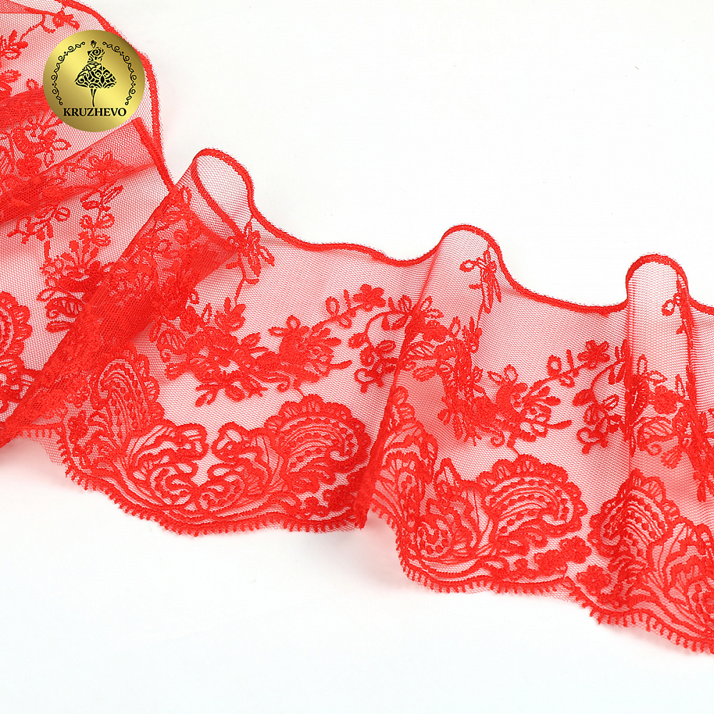 Кружево на сетке 130 мм / 13.71 метра (жесткая сетка, матовая нить), TBY.BL.40466, цв.R0515 красный, Kruzhevo
