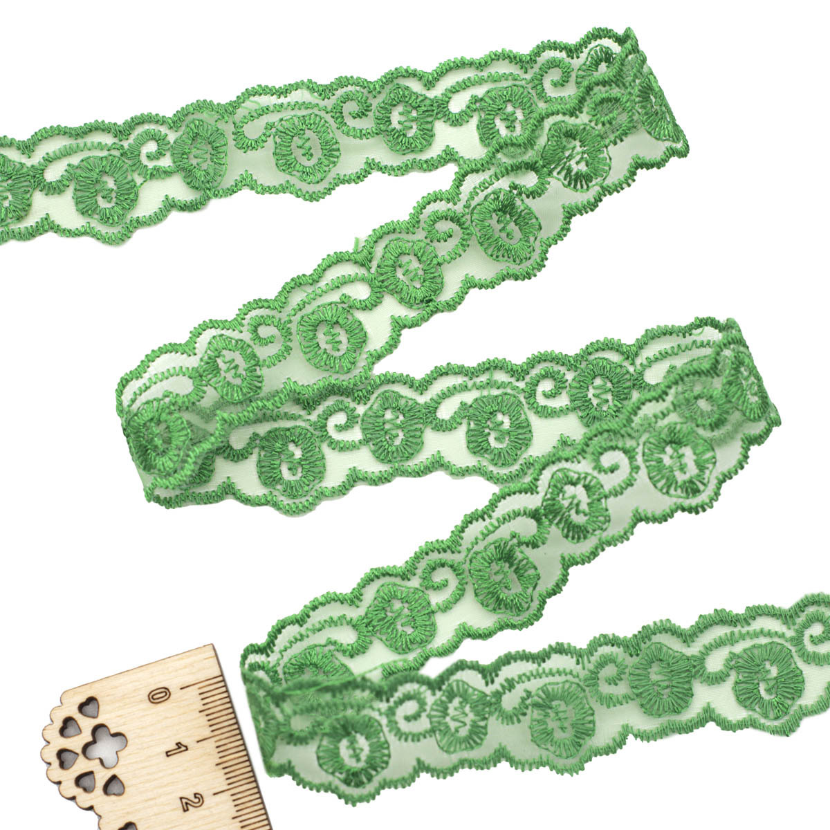 Кружево на сетке 23 мм, 6,8 м (±4 см), 060 св.зеленый